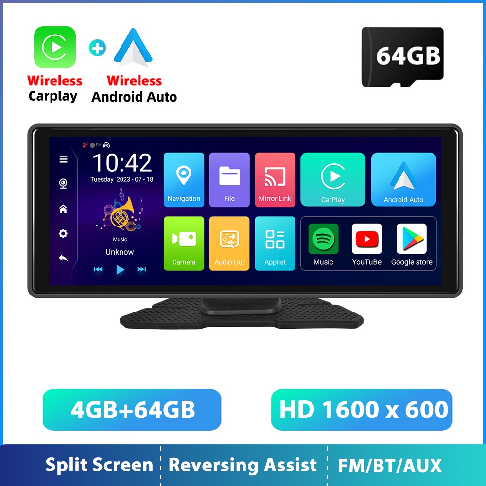 10.26 Inch Android 13 4+64G Dash Cam Carplay Android Auto Mirror Screen WIFI GPS Bluetooth Car DVR Navigation Recorder Dashboard Monitor