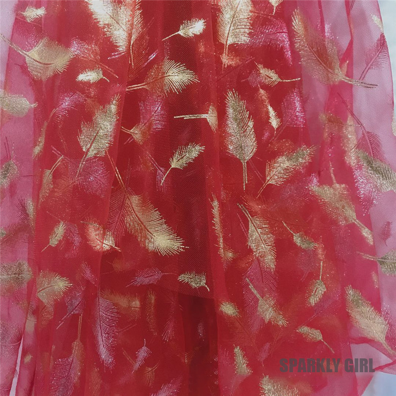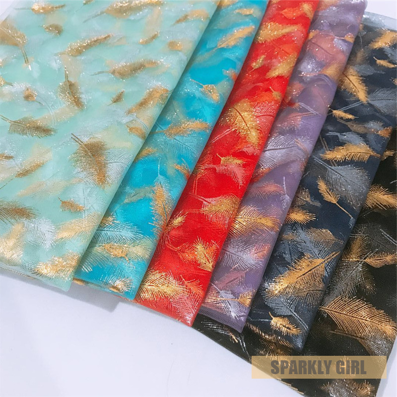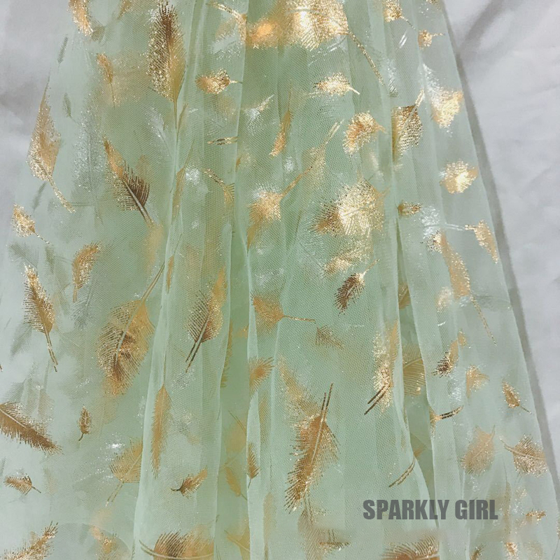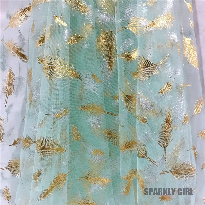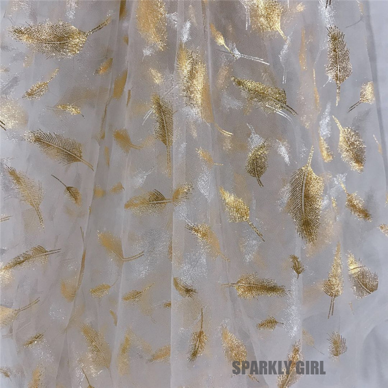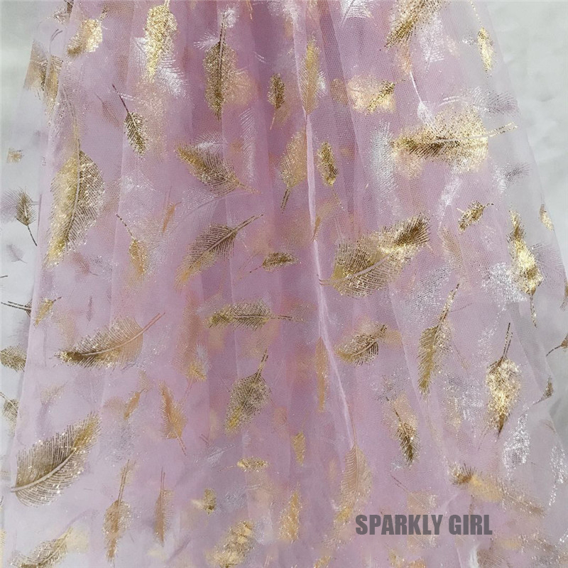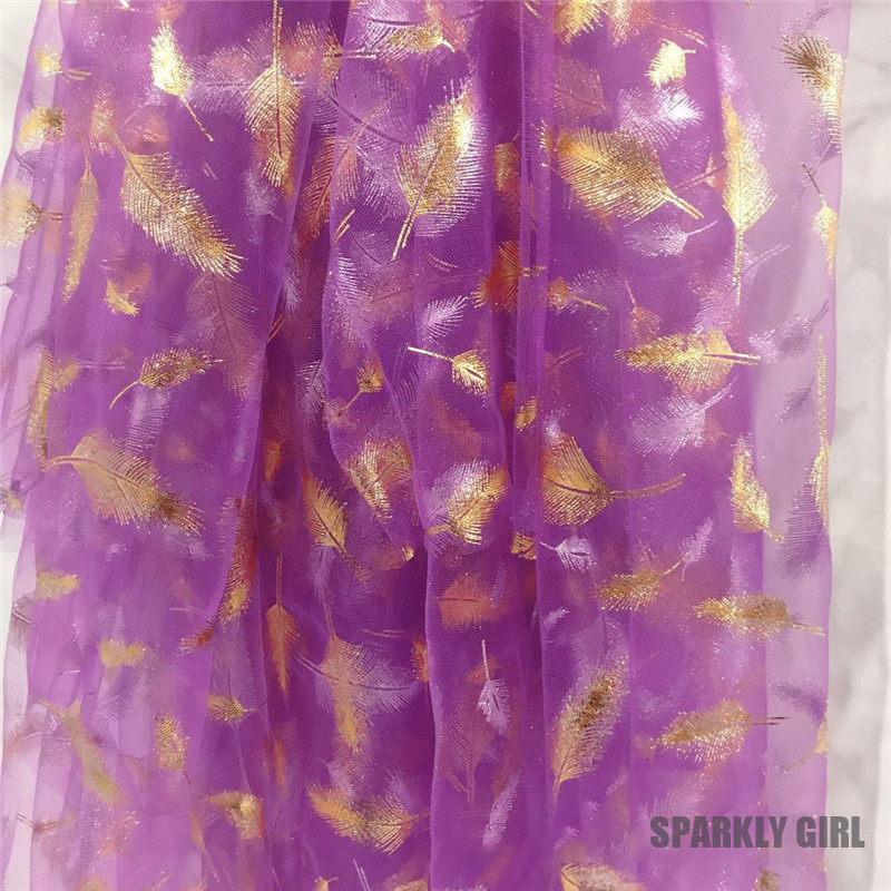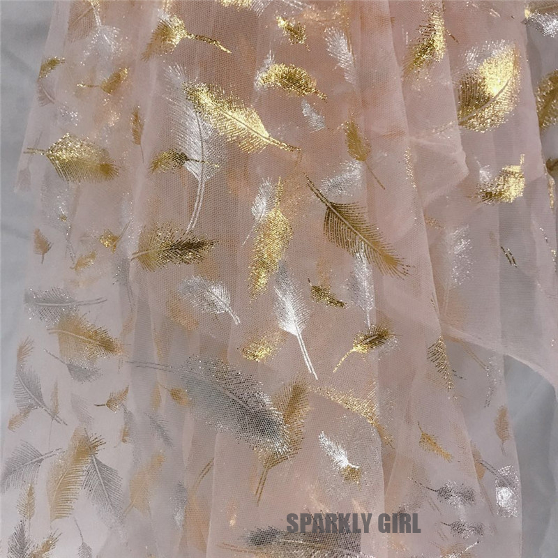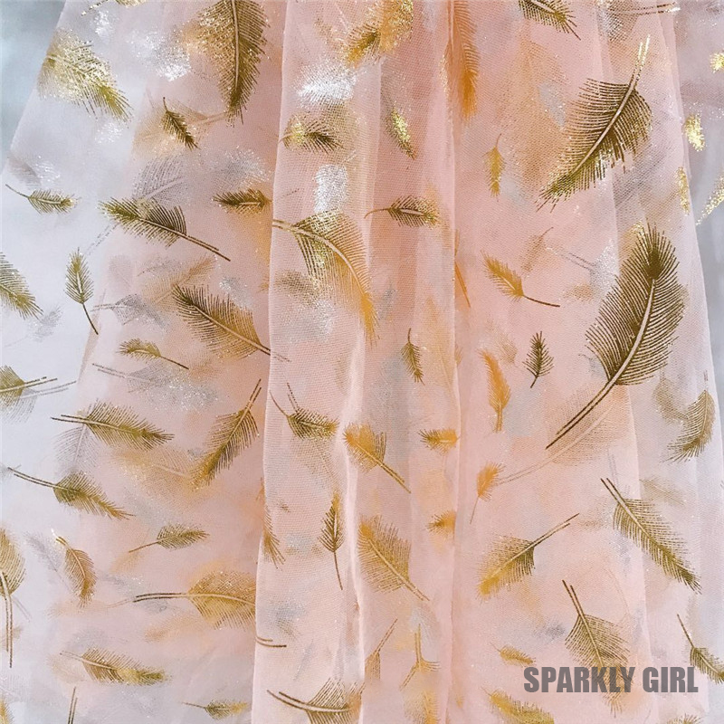100*150cm Hight Quality Light Feather Mesh Fabric Soft Bronzing Fabric Tulle Fabric Printed Wedding Cloth for DIY Sewing Dress and Girl Tulle Skirt/photography Background Cloth/Stage Costume Decoration