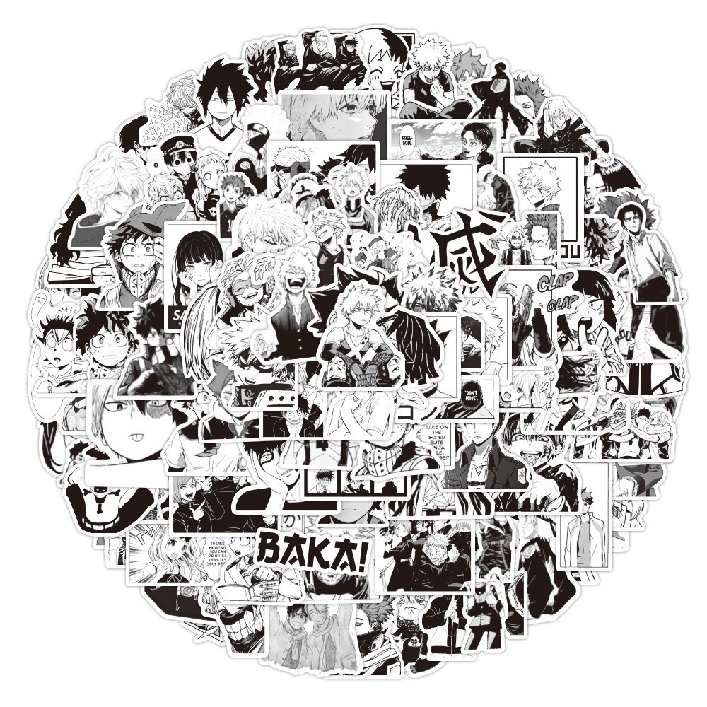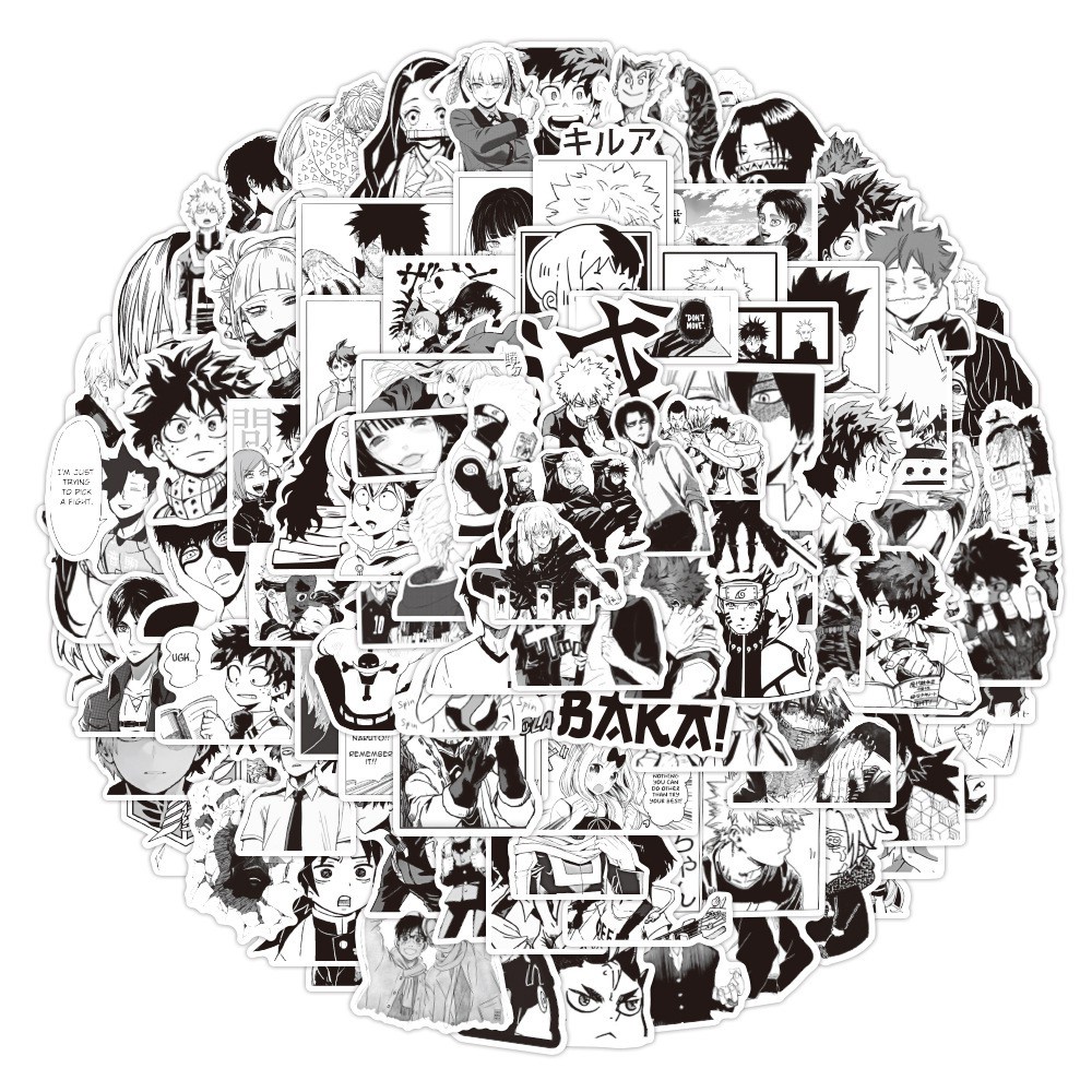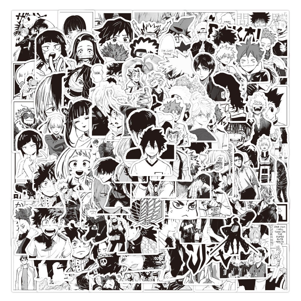 100/50/25/10PCS Anime Character Stickers Black and White Japan Anime Summary DIY Skateboard Repeatable Luggage Car Sticker