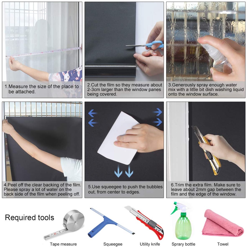 100% Blackout Window Film Removable Opaque Total Privacy & Sun Blocking Solution for Home Day Sleep Light Blocker