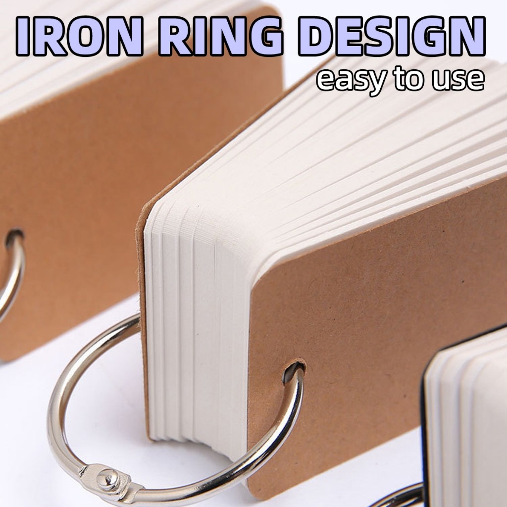 100 Pages Iron Ring Handwritten Memo Hard Blank English Word Card Loose-leaf Memo Note Message Card