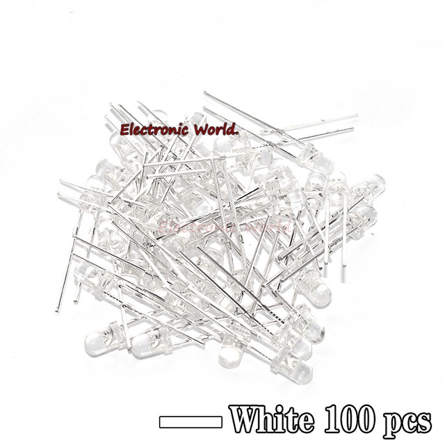 100 Pcs 3MM LED Diode 3MM Various Kits White Green Red Blue Yellow Orange Pink Purple DIY Luminous Lamp Bead Light Indicator