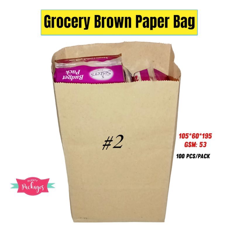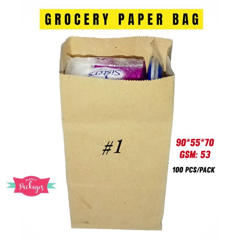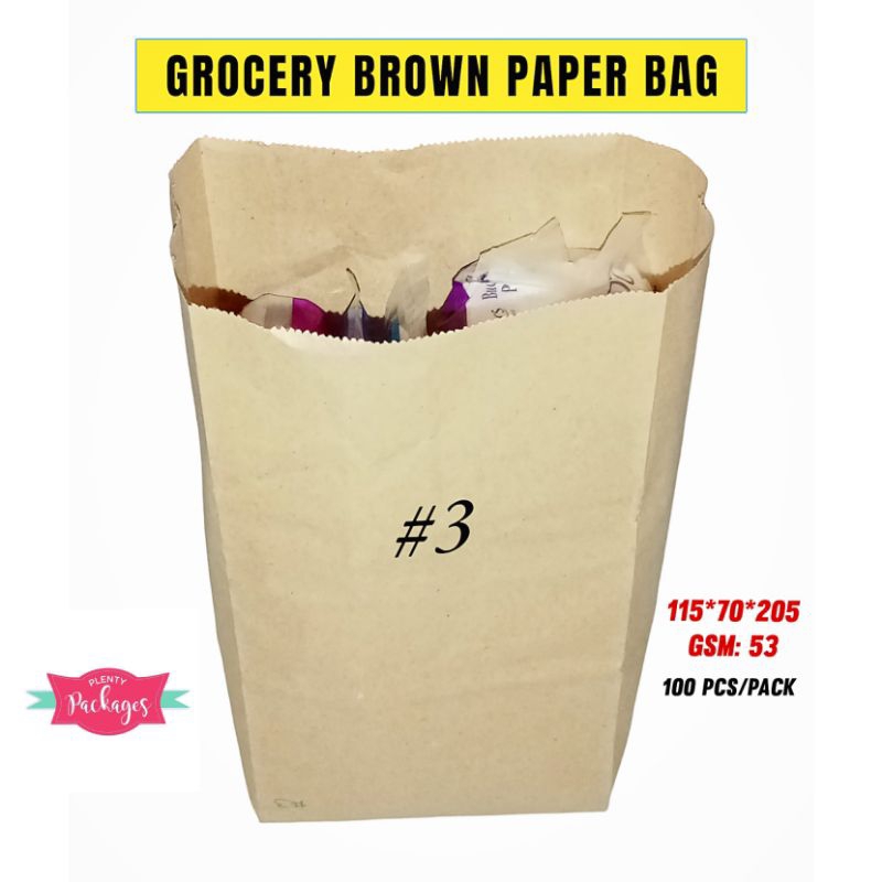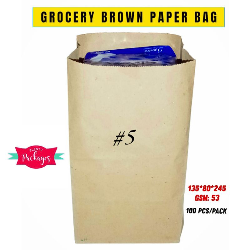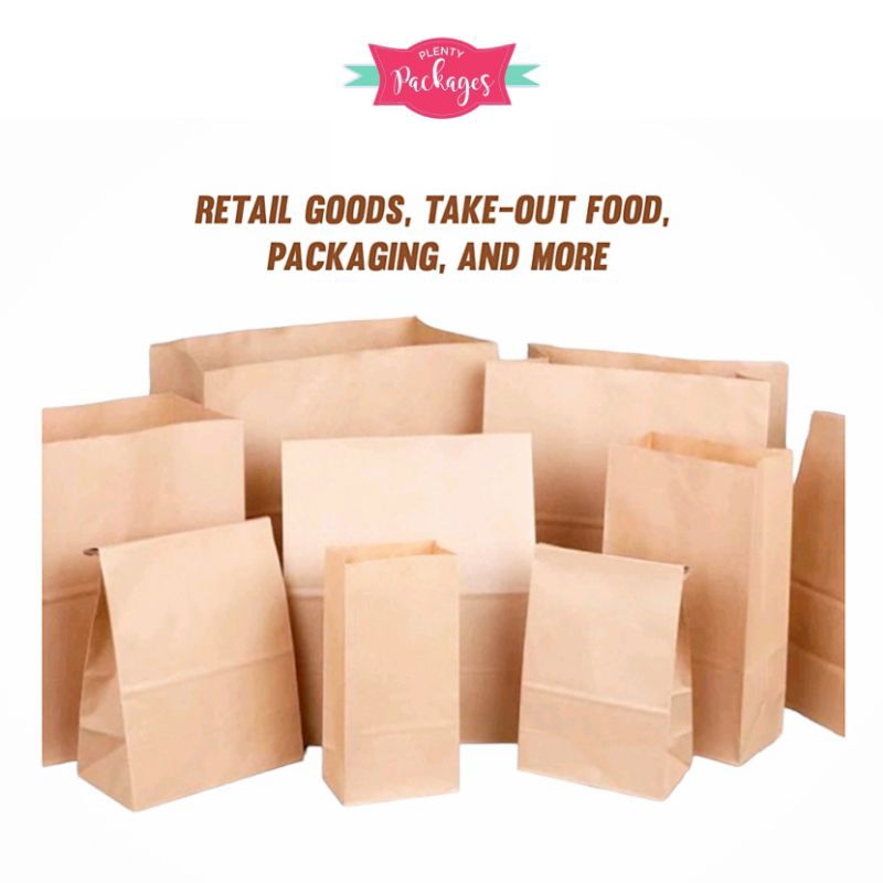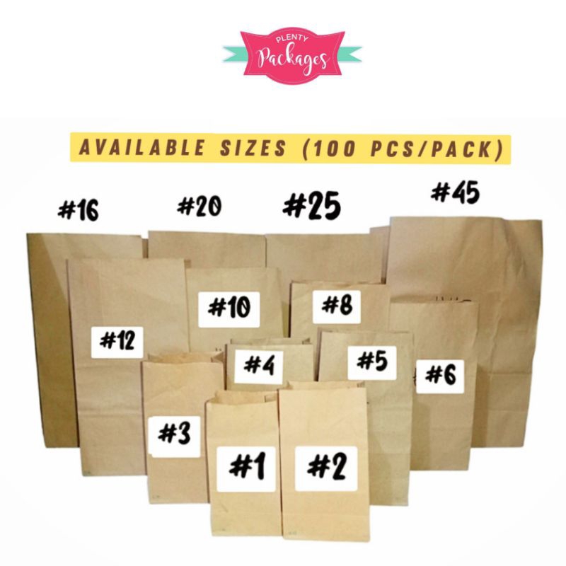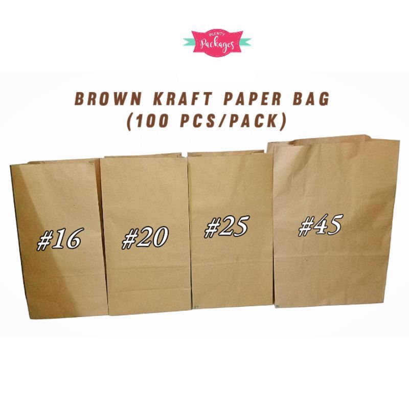 100 Pcs Brown Kraft Paper Bag, Take-out Bag, Grocery Paper Bag (Size #1 to #5)