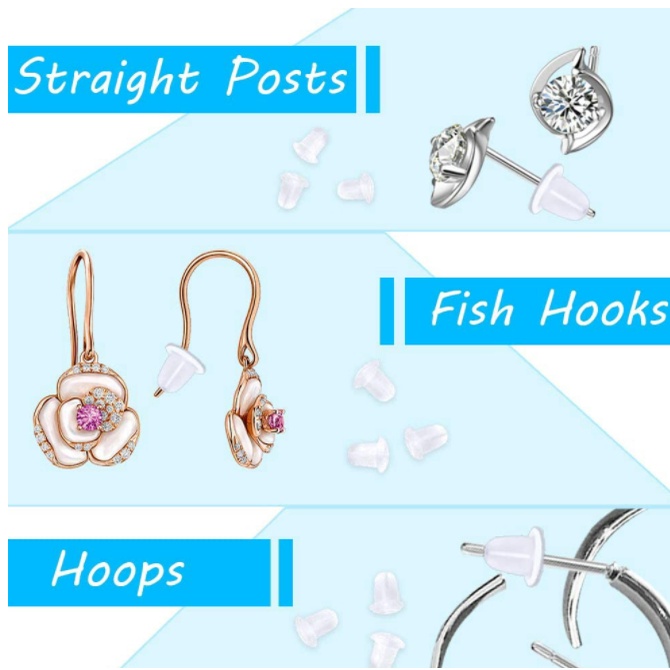 100 Pcs Clear Soft Silicone Rubber Earring Backs / Ear Safety Back Pads Backstops Bullet Clutch Sto