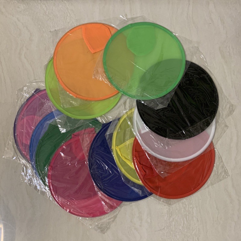 100 Pcs Foldable Round Fan Plain Colorful Nylon Frisbee Fan