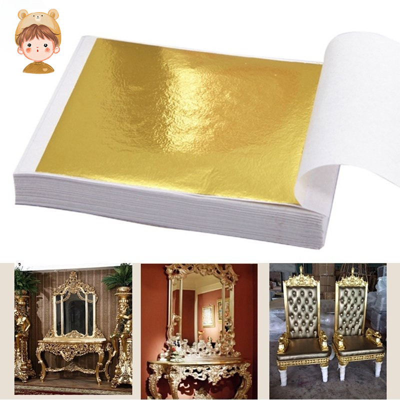 100 Pcs/set 24K Gold Leaf Sheets for Art Crafts Design Gilding Framing Scrap YKD