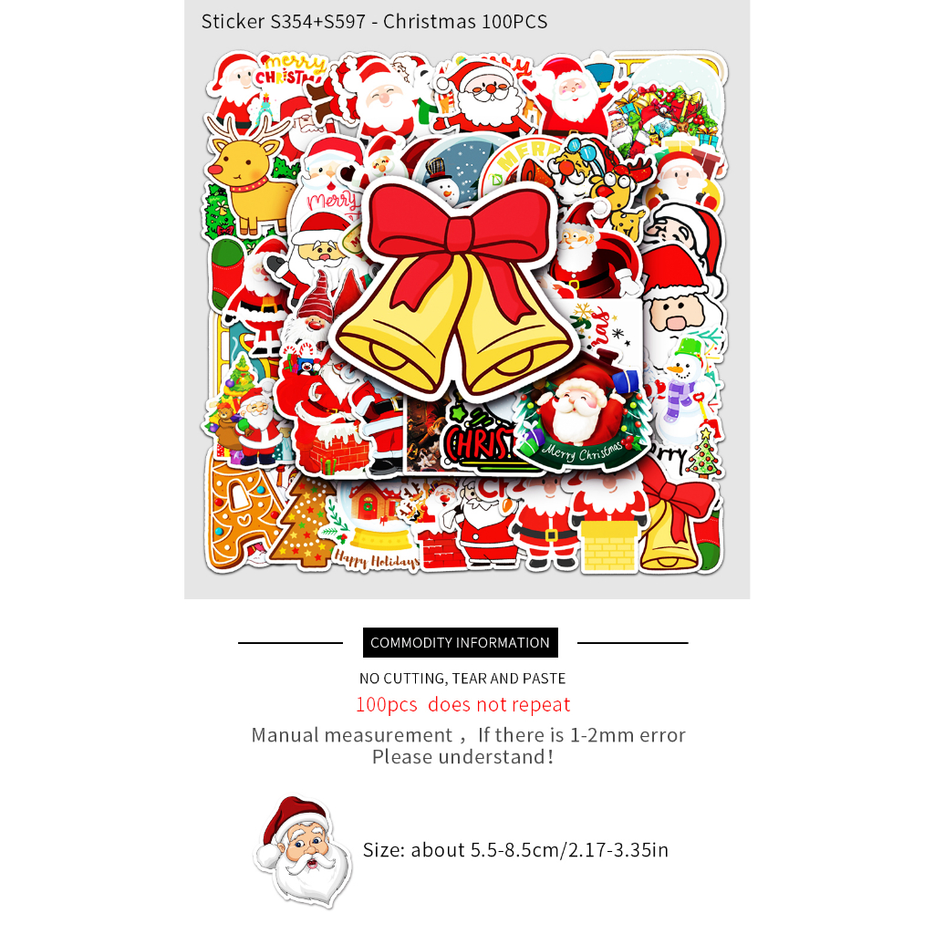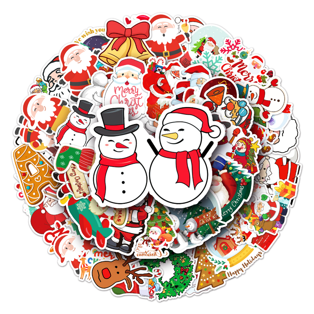 100 Piece Funny Christmas Santa Claus Stickers For laptops/phones/Helmet/Motor/Car DIY Creative Graffiti Home Decal Waterproof Stickers