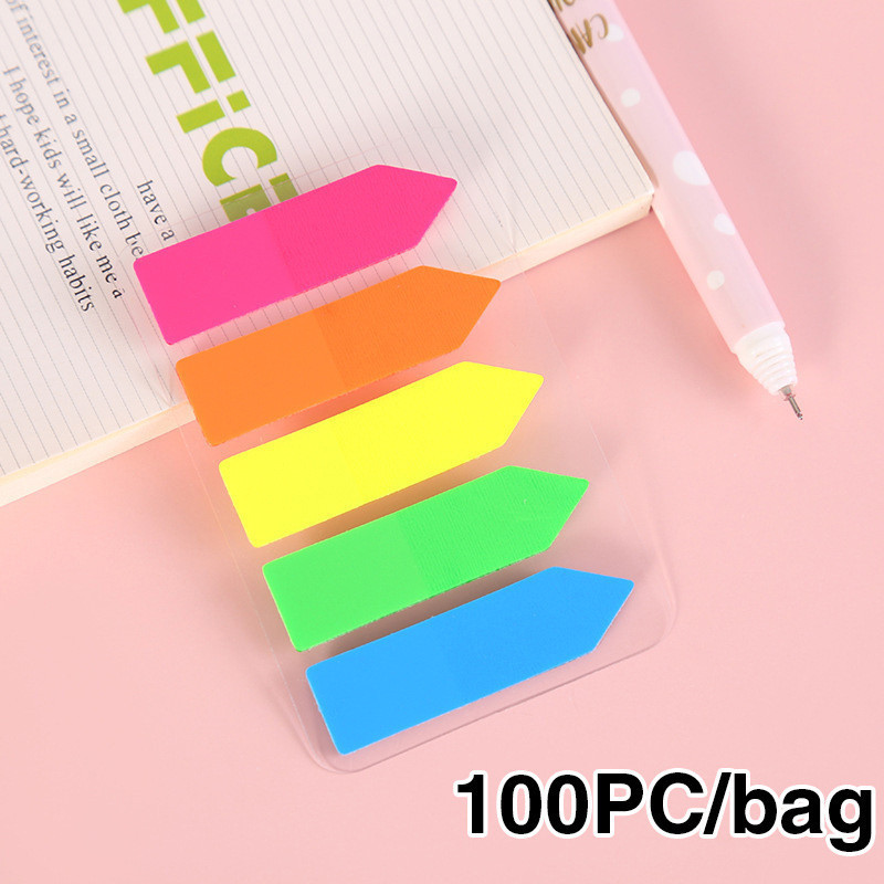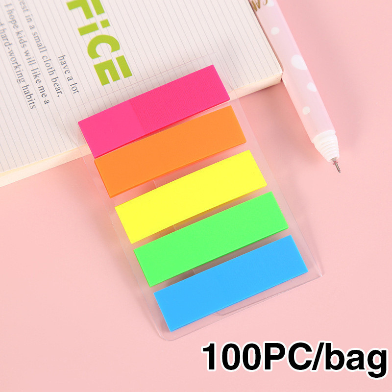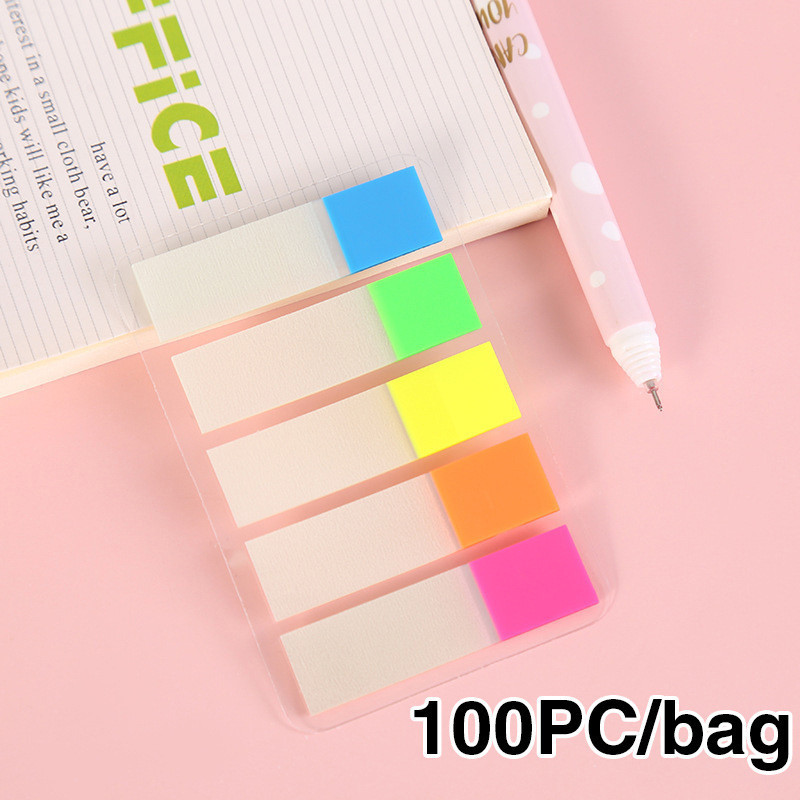 100 Sheets Color Transparent Fluorescent Sticky Note Flags Tabs Page Marker Index Sticke