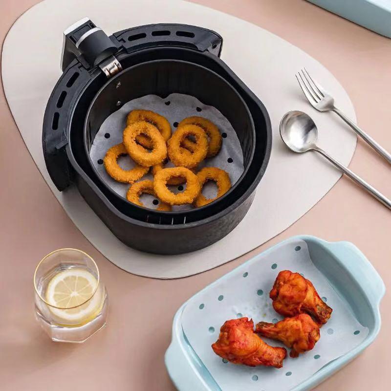 100 Sheets of Baking Parchment Paper for Oil-Free Fryer Round Perforated Non-Stick Oil-Absorbent