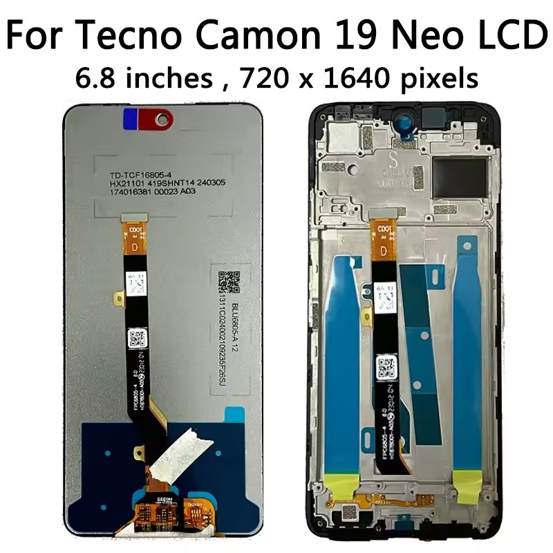 100% Tested LCD For Infinix Tecno Camon 19 Neo CH6i Display Touch Screen Digitizer Assembly With Frame Replacement