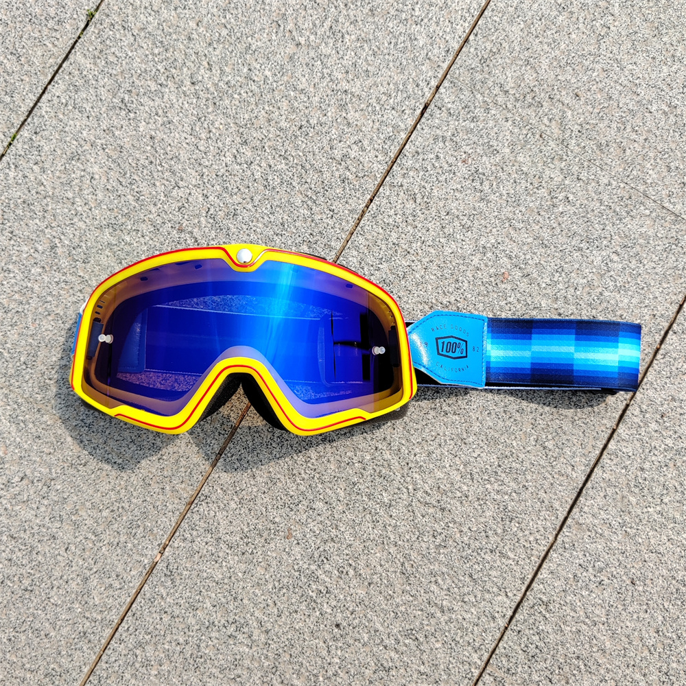 100% Vintage Motorcycle Goggles Off Road Glasses Retro ATV Ski Goggles Sunglasses Non-Slip Strap UV Protection Racer Ride Racing