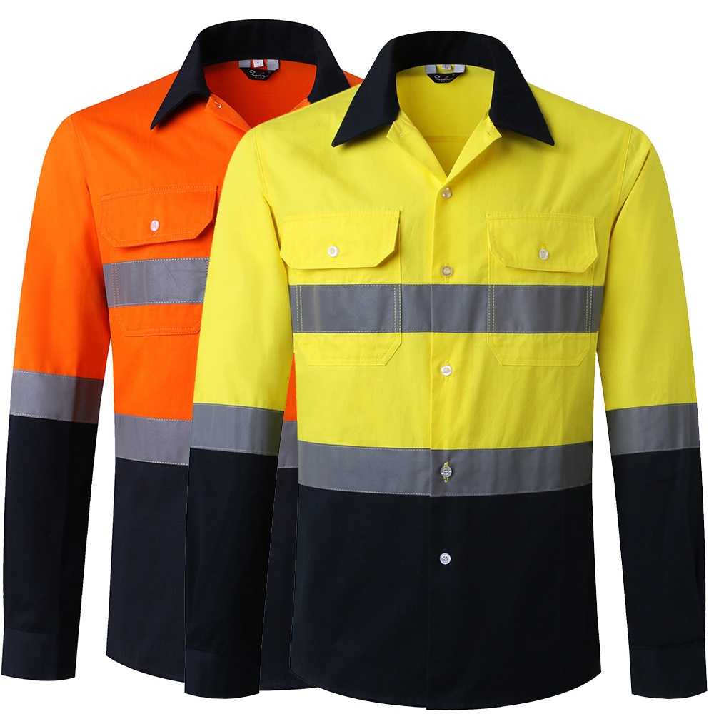 100% cotton Reflective Safety Shirt For Constrcution Men Workwear High Visibility Work shirts With Reflective Tapes Safety Clothing Working Clothes