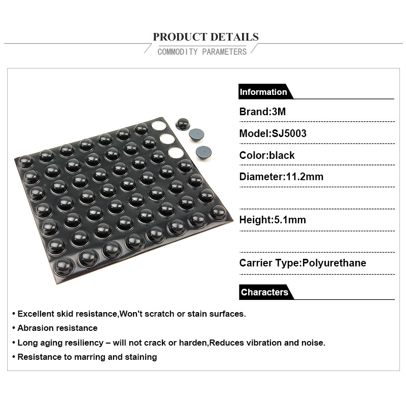100% original 3M SJ5003 rubber bumper/ Protective rubber dots/black bumper 3m rubber bumpers/W11.2mm*H5.1mm/3000 pcs per carton