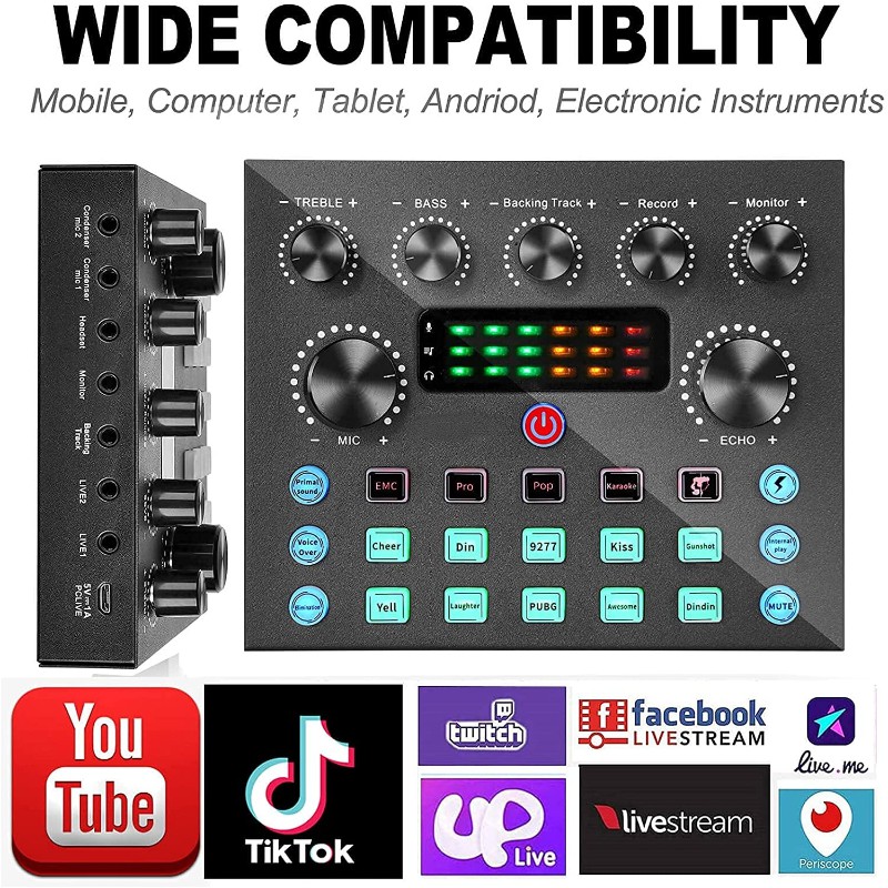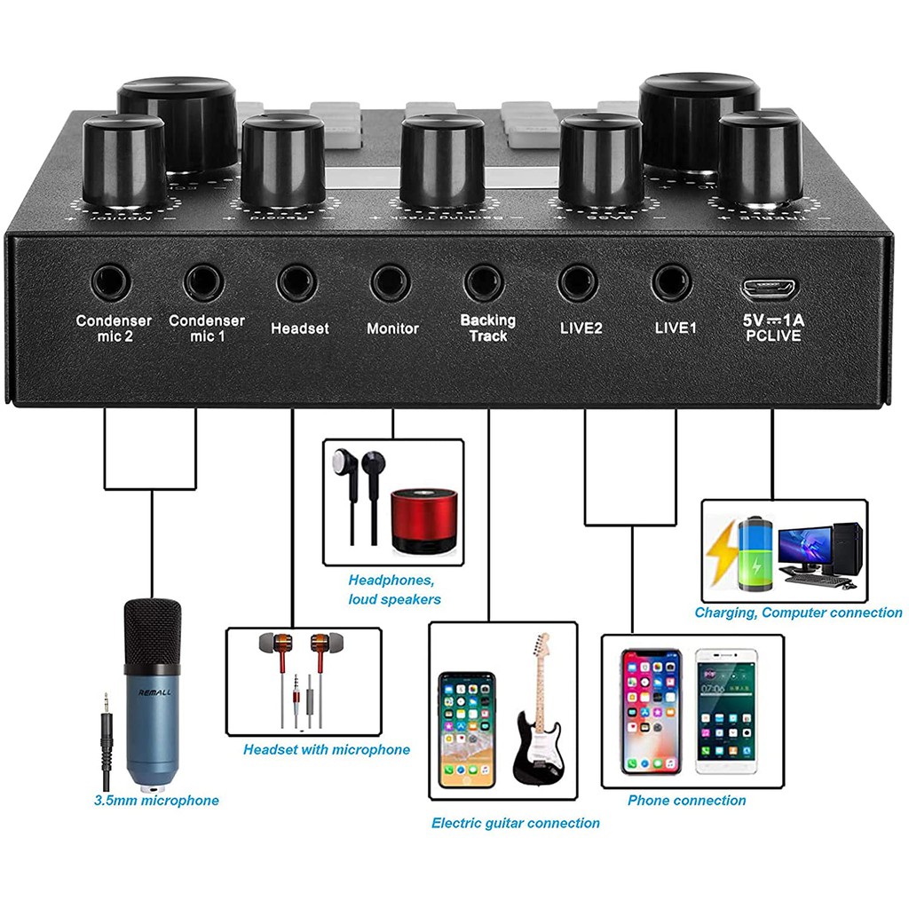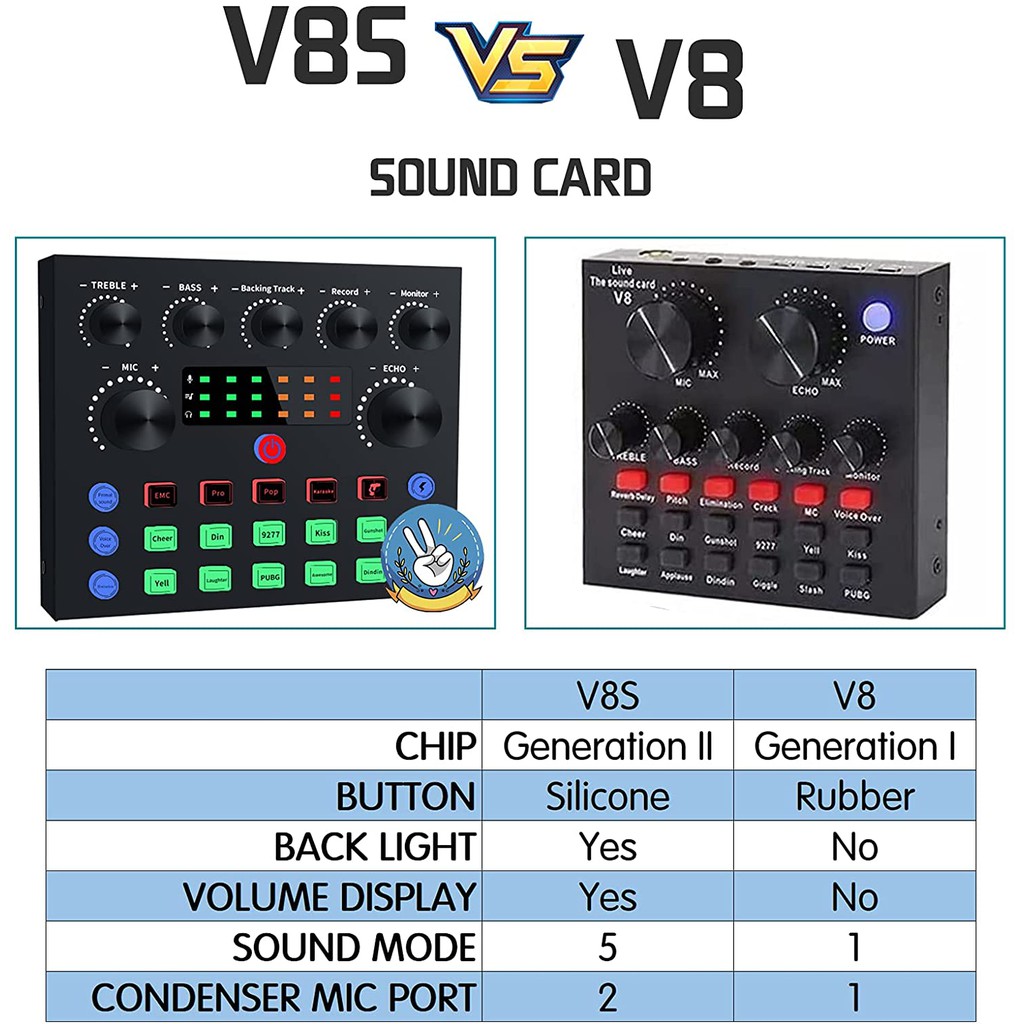 100% original V8S Live Sound Card for Audio Mixer Streaming, Bluetooth Sound Effects Mixer Board