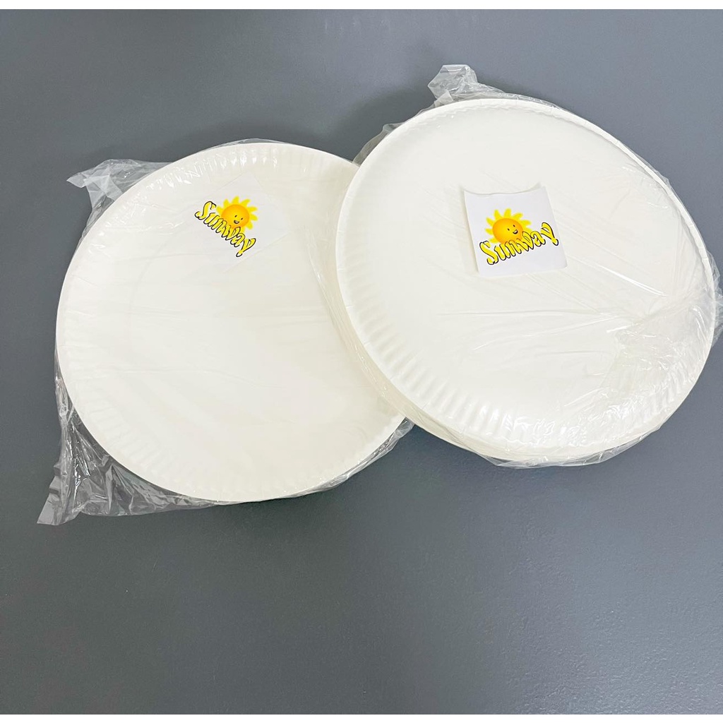 100 pcs /9 inches Paper Plate Silver or White Laminated Disposable