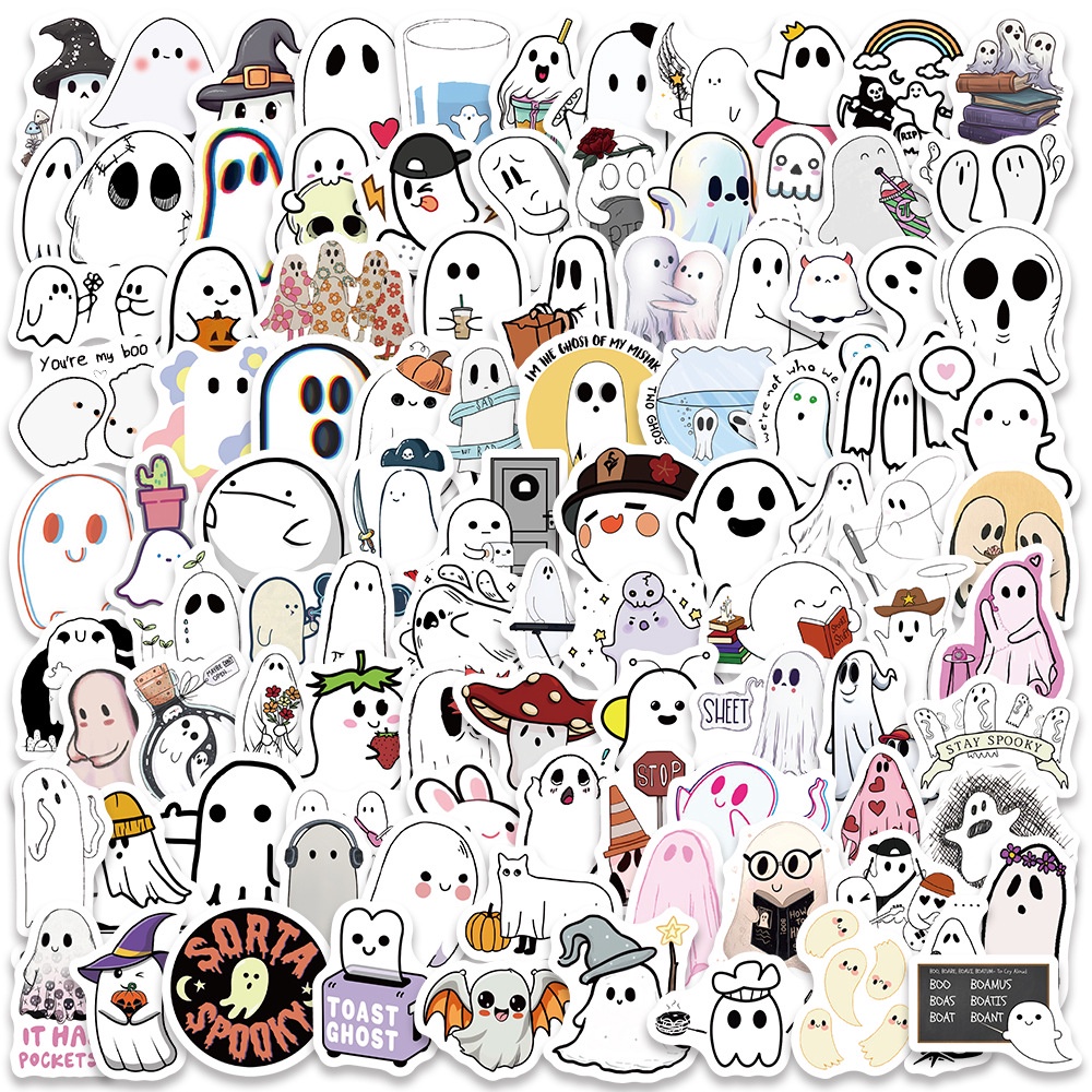 100 pcs Cute Little Spook/Ghost Cartoon Waterproof PVC Stickers