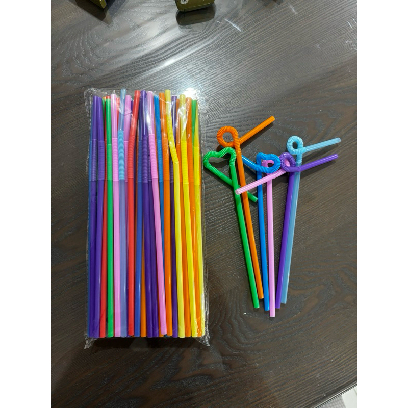 100 pcs - TWIST Long Plastic Heart Bending Twister Straw Assorted Colors Disposable Drinking Straw