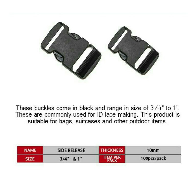 100 pcs Side Release / ID Button Dig Black for ID Sling