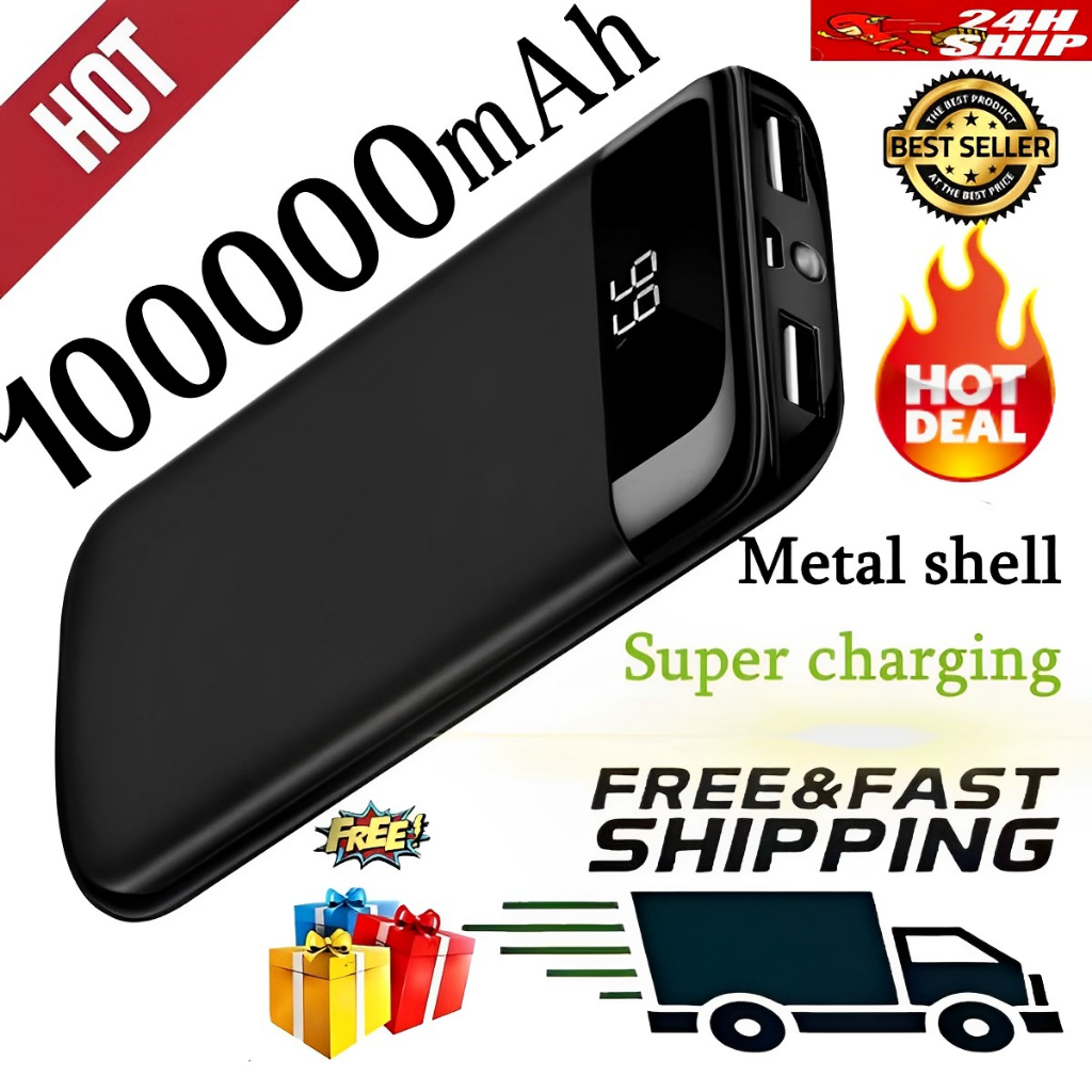 100% power bank original 100000mah LED Power Bank Large Capacity Slim Small Polymer Fast Charger 3.0A Suitable models Dual Input Fast charging Micro-USB/Type C Input LED display