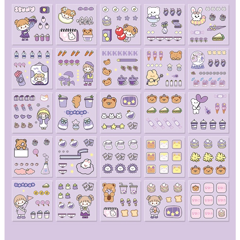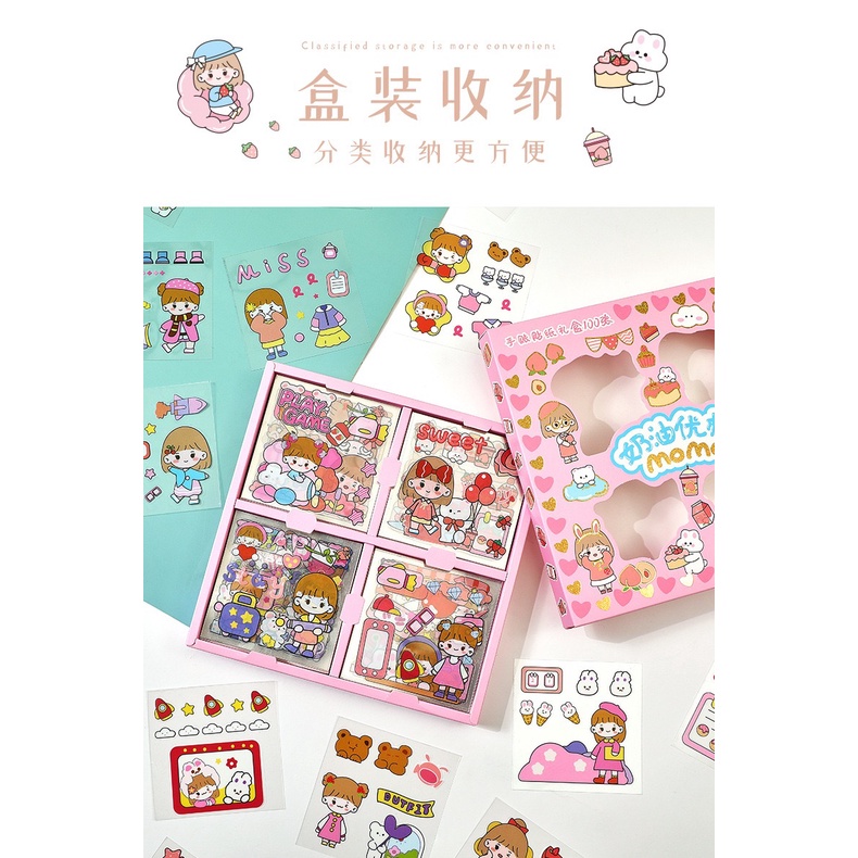 100 sheets Clear Kawaii Die Cut Sticker Box Set