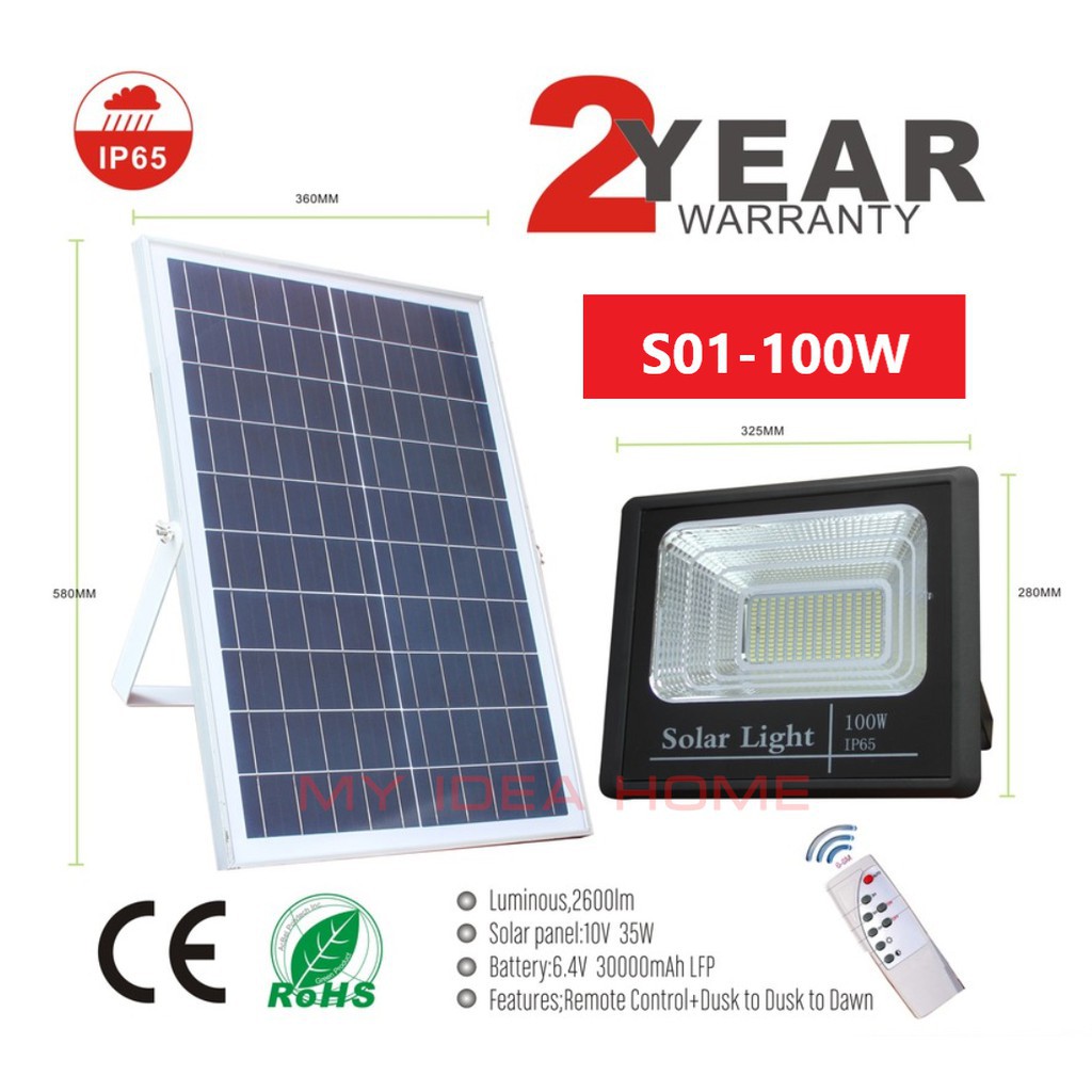 100 watts Solar Led Outdoor Flood Light Street Lamp Waterproof With Remote HP-S01