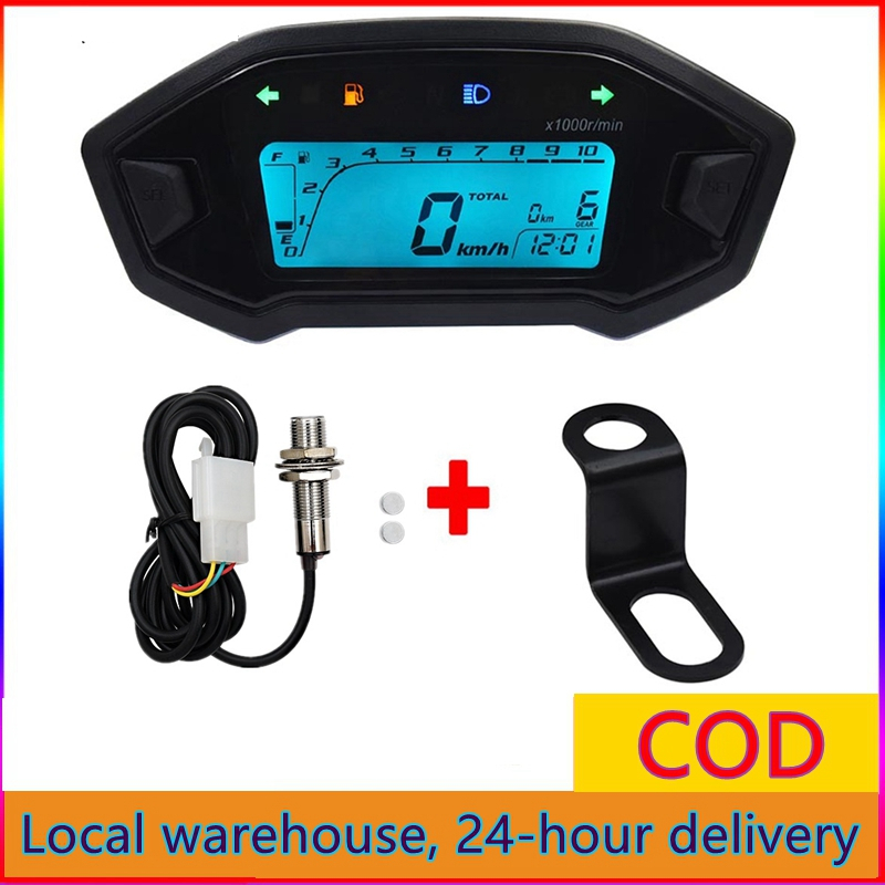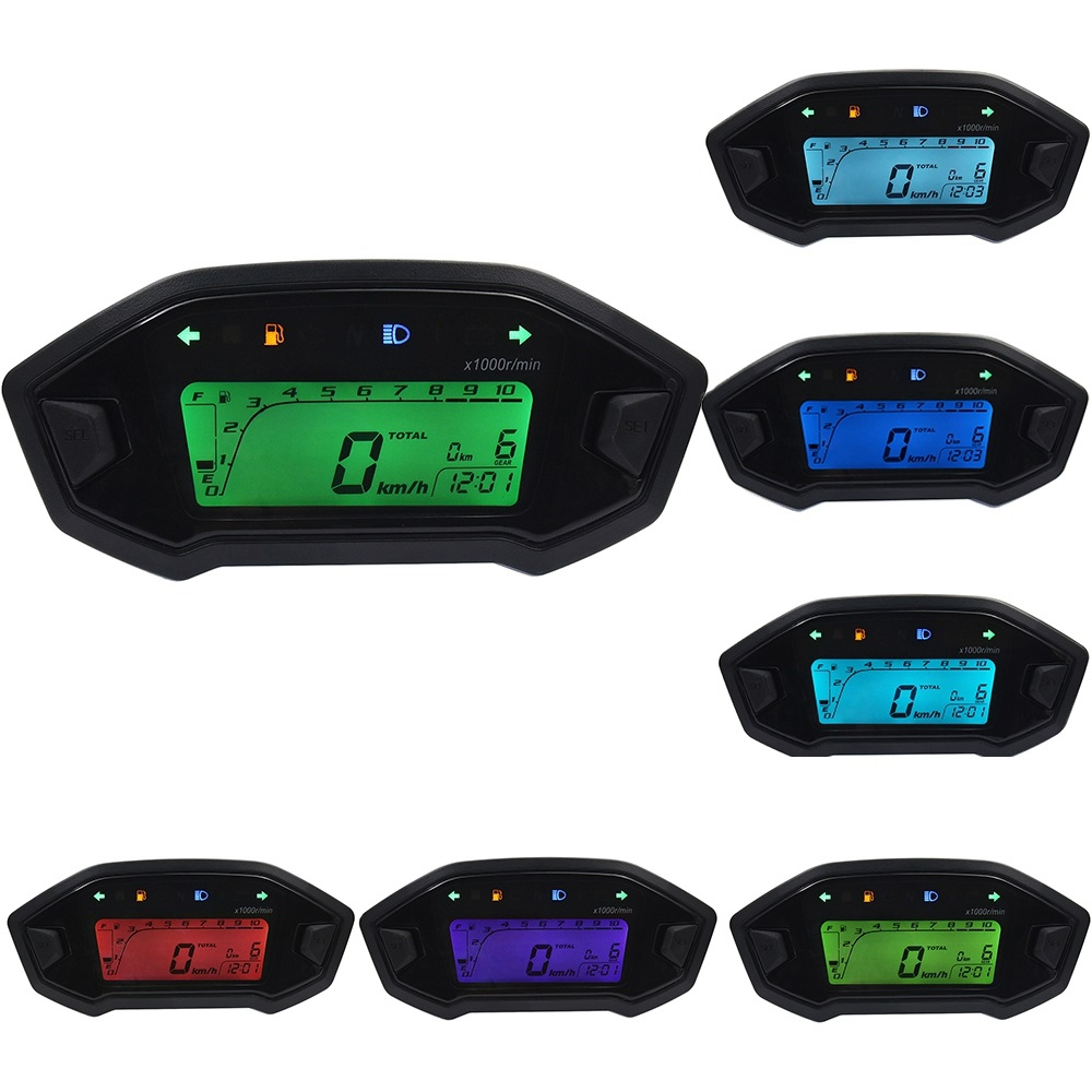10000RPM New Universal Motorcycle LED Adjustable Speedometer 7 Colors Backlight Digital Odemeter Tachometer