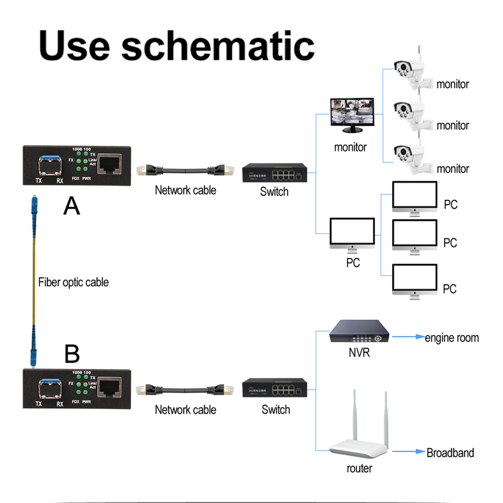 1000Mbps A/B Gigabit Fiber Optical Media Converter 1000Mbps Media Fiber Converter Switch 1Pair
