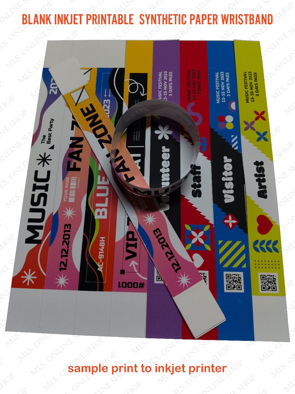 Inkjet Printable Synthetic Wristband sheets, Event Wristbands, Resort Wristbands for crowd control