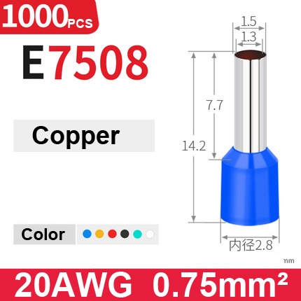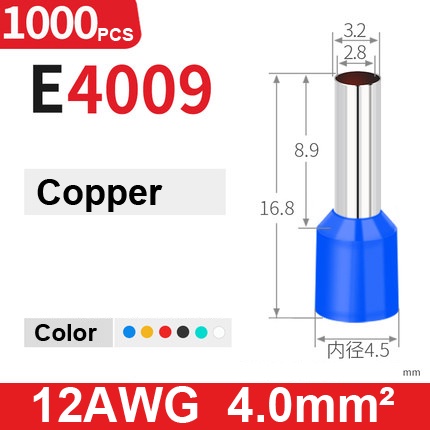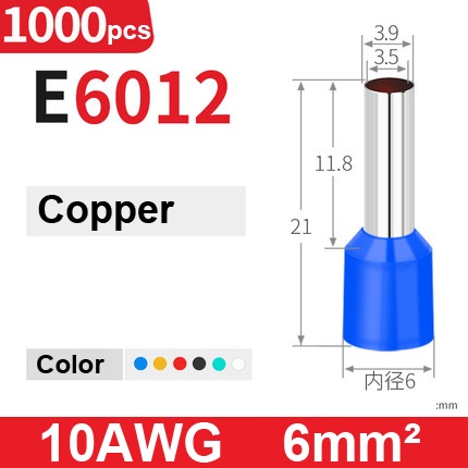 1000Pcs Electric Wire Conector Wire Ferrule Terminal Cable Terminals End Crimps Insulated Assortment