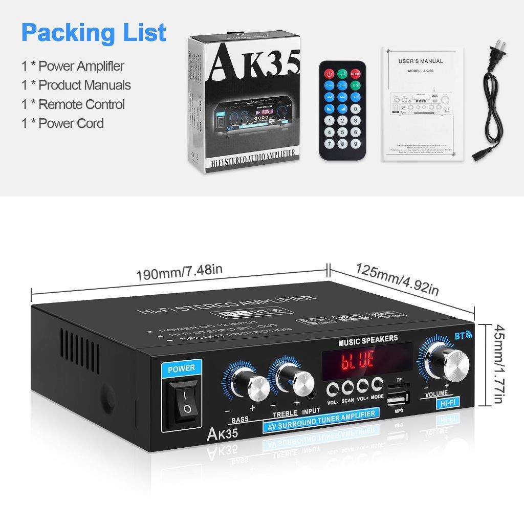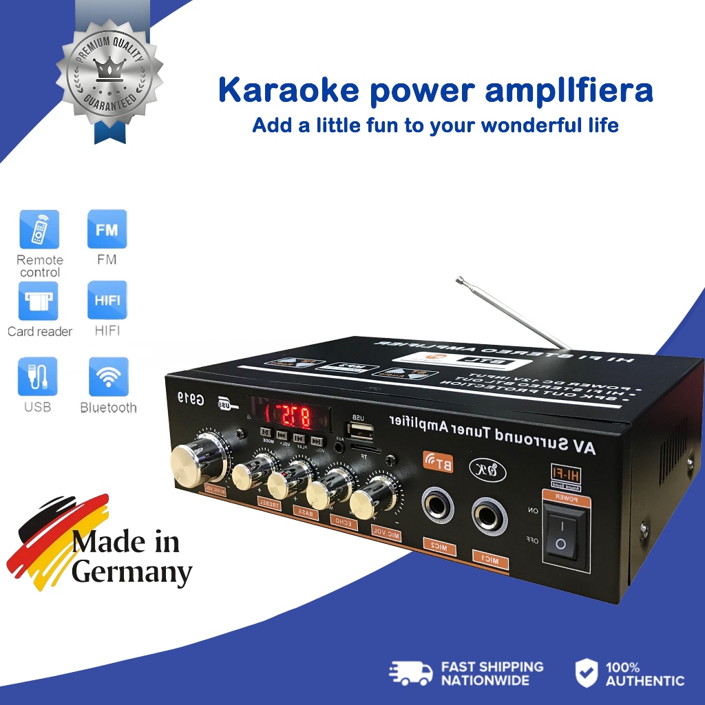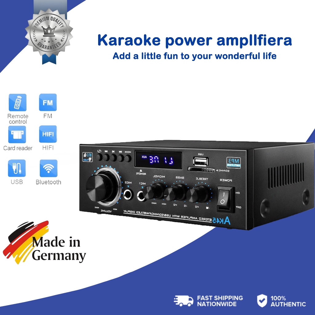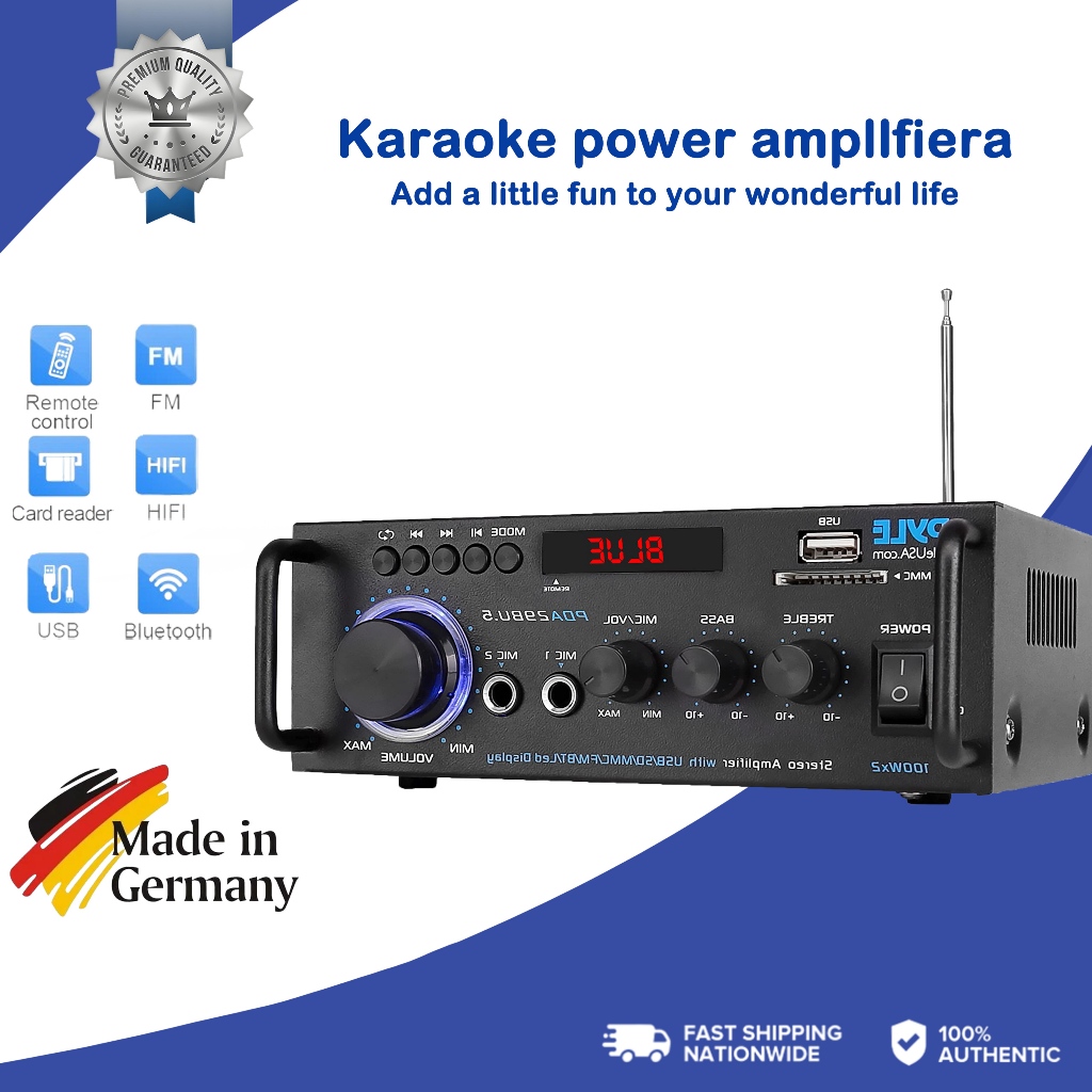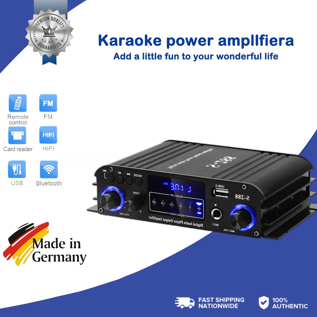 1000W Digital Bluetooth Stereo Amplifier Hifi Fm Radio Usb EU Plug With 2 Microphone Sockets Home Stereo Audio Amplifier Bluetooth 2CH EQ Wireless Stereo Audio