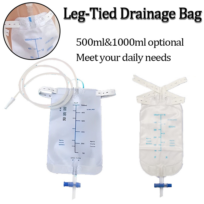 1000ml & 500ml Disposable Drainage Bag Leg Tie Catheter Urine Collection Bag Connected to Urinary Ostomy Bag/Urine Bucket/Urine Catheter Backflow Prevention
