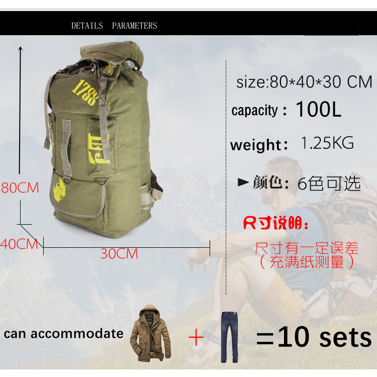 100L Hiking Bag Canvas Men's Backpack Unisex Travel Bag Camping Backpack Climbing Backpack