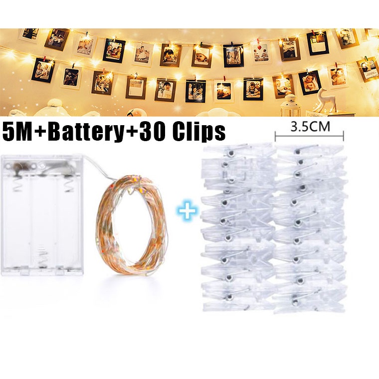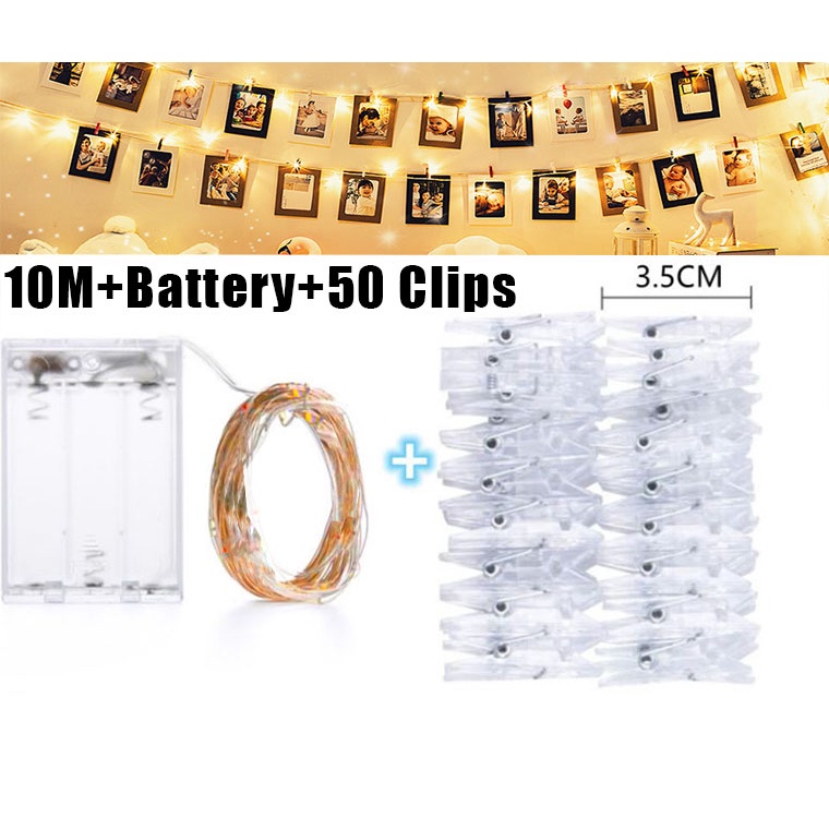 100LED Photo Clip String Lights with 50 Clips Battery Powered USB for Bedroom Birthday Wedding Party Christmas