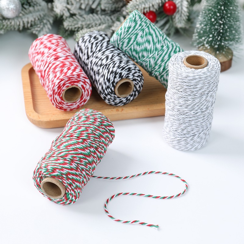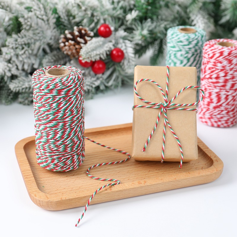 100M Multicolor Christmas Cotton Rope Natural Jute Twine String Christmas Gift Wrapper DIY Handmade Gift Box Packaging Christmas Decorations