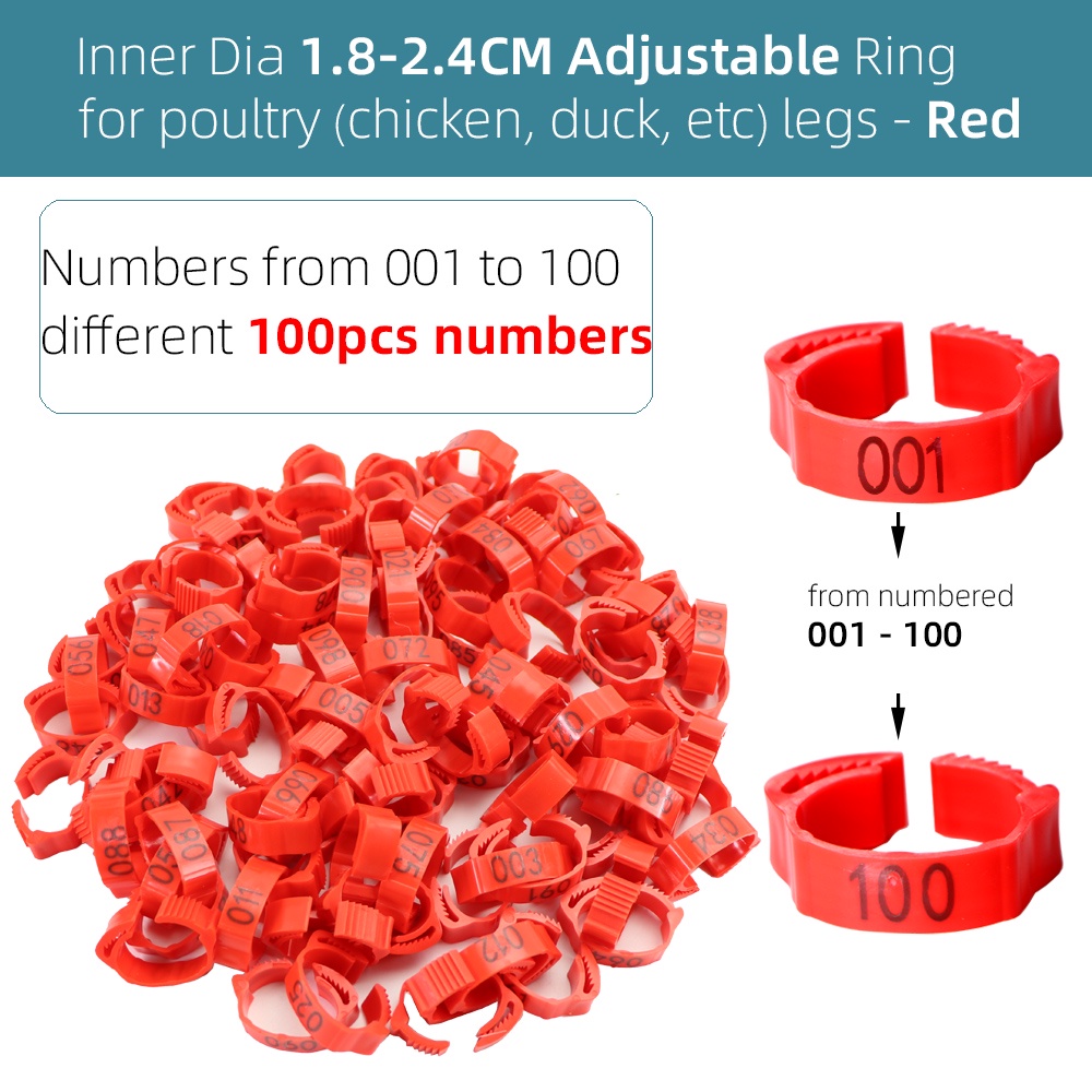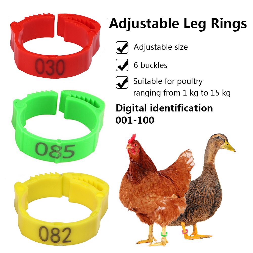 100PCS 1.8-2.6CM Chicken Leg Rings Adjustable Chicken Identification Leg Bands with Numbered