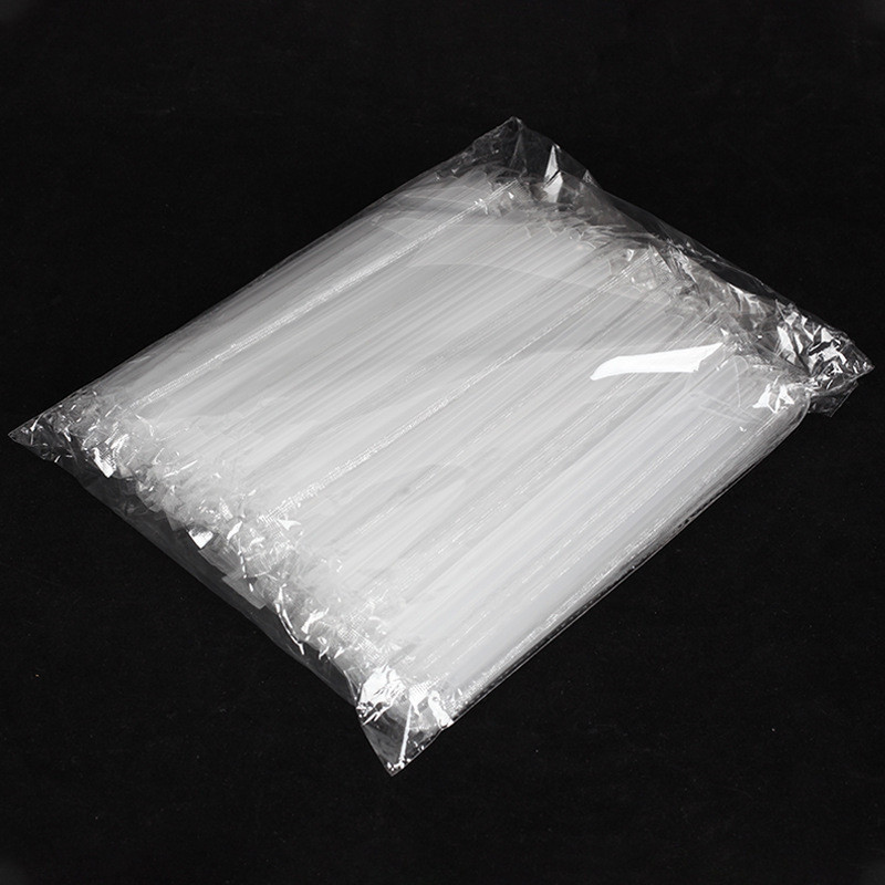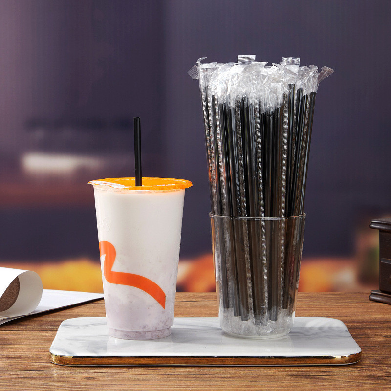 100PCS 23cm Boba Straw Sago Straw Black Individually Thin Packed Long Plastic Straw for Milk Tea 6mm