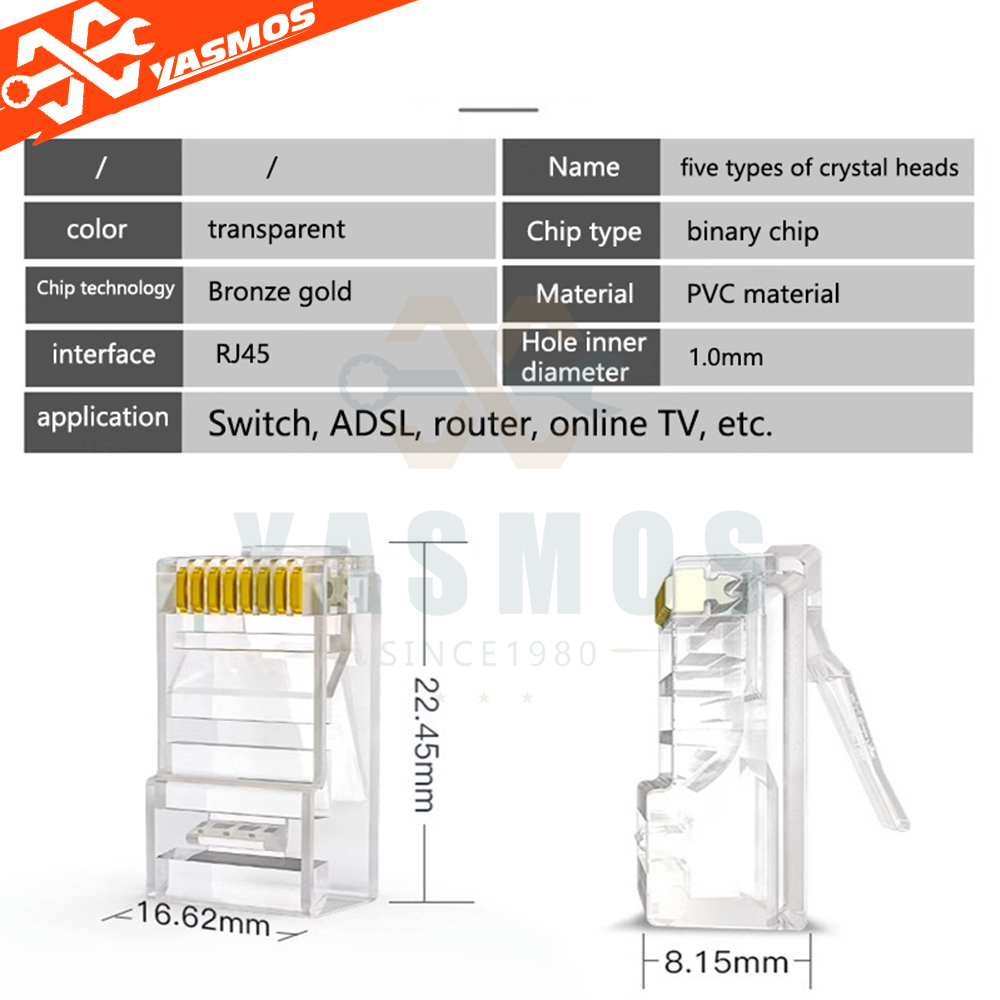 100PCS AMP CAT5 CAT6 RJ45 Connector 8P8C Modular Ethernet Cable Header Plug