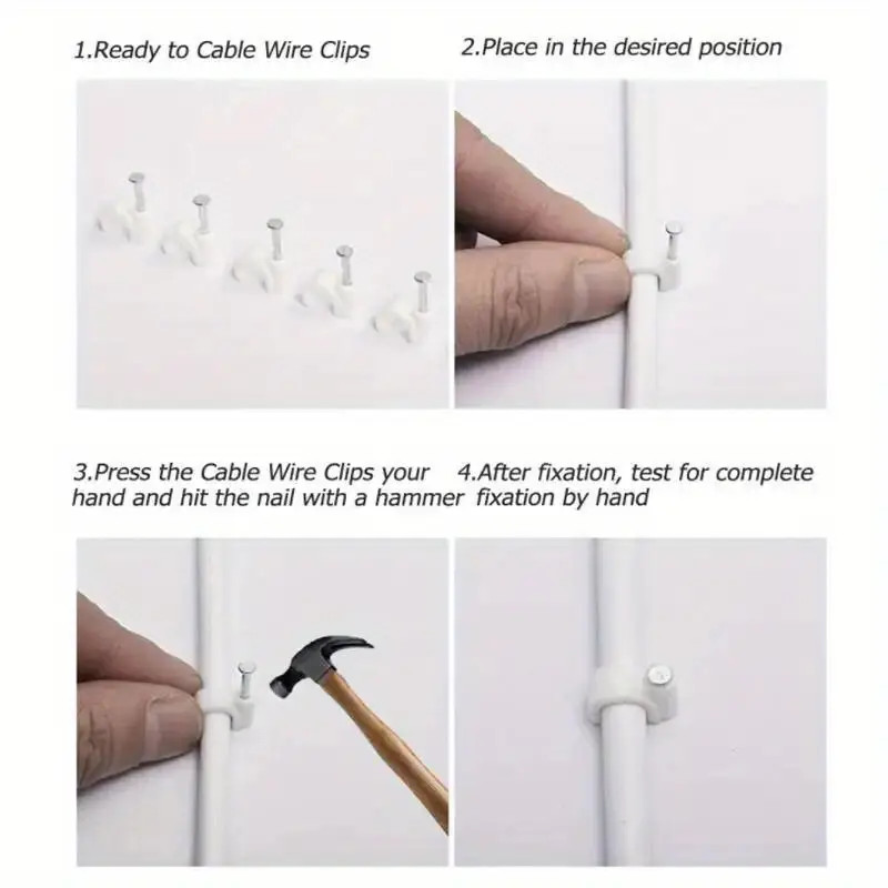 100PCS Circular PVC Plastic Wire Clips - Secure Wire Nails Fixators for Effortless Cable Management