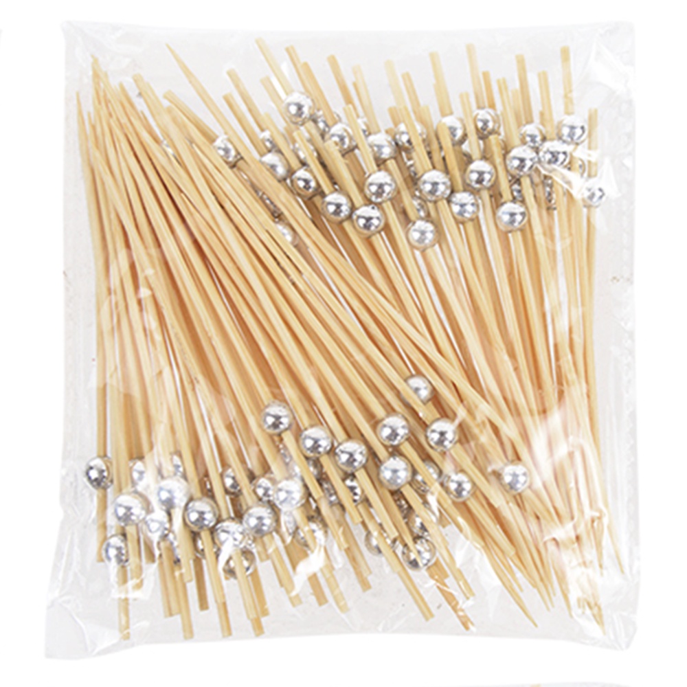 100PCS Cocktail Picks, Fancy Cocktail Toothpicks for Appetizers Picks, Handmade Bamboo Cocktail Skewers for Appetizers Fruit Party, Gold Pearl Food Picks Charcuterie Accessories (4