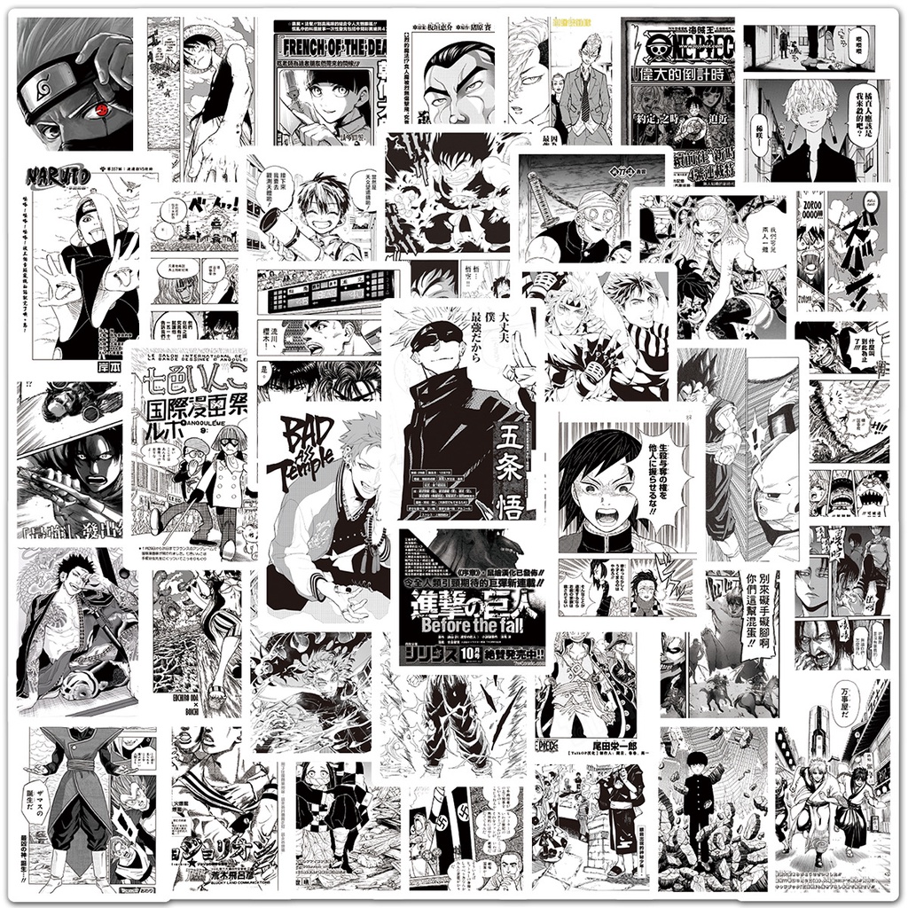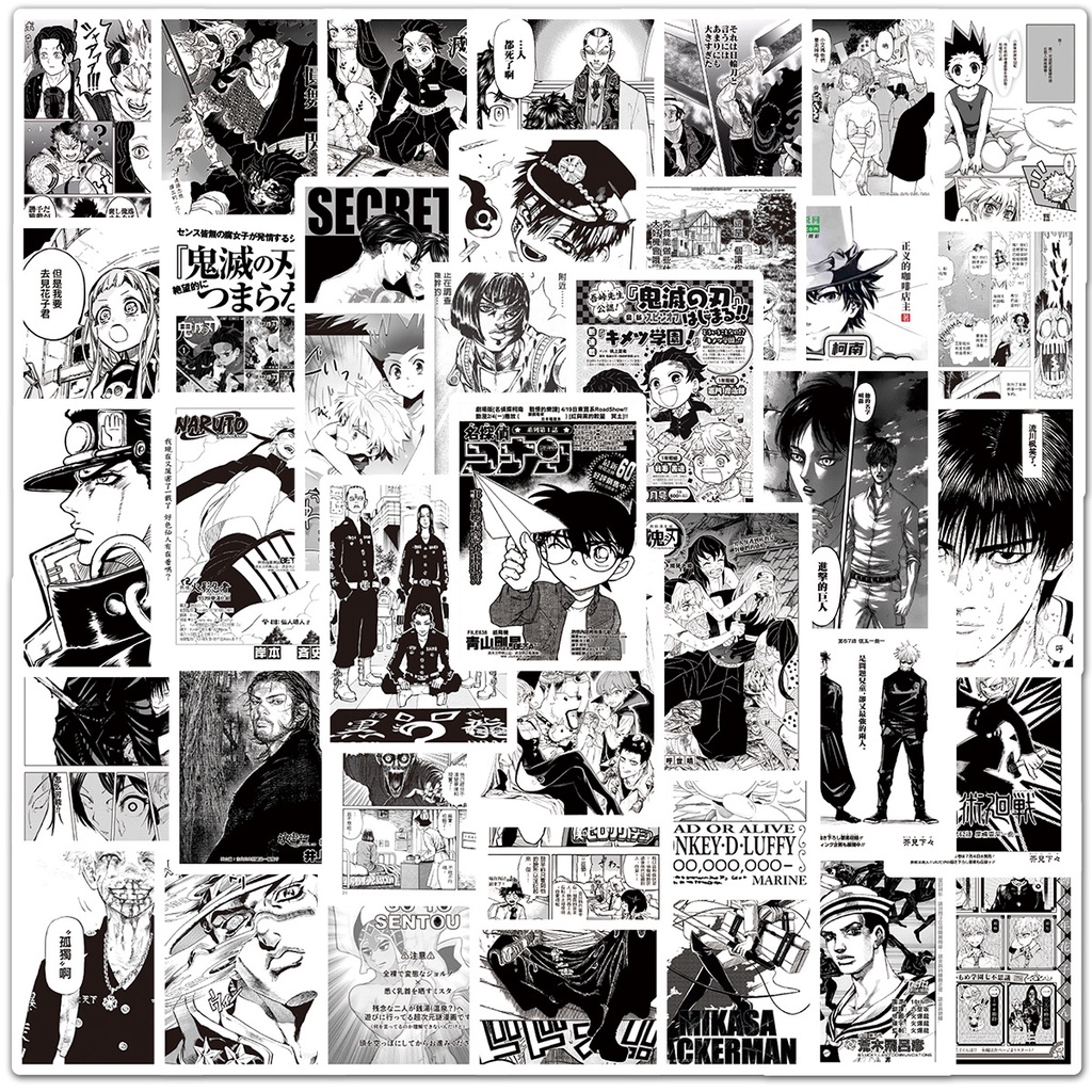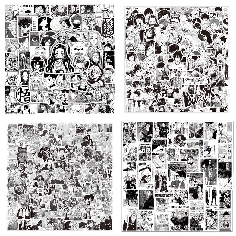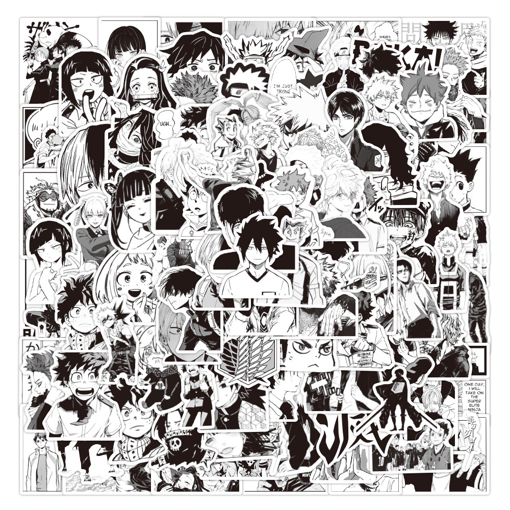100PCS Mixed Black and White Anime Stickers For Laptop and Luggage Decal