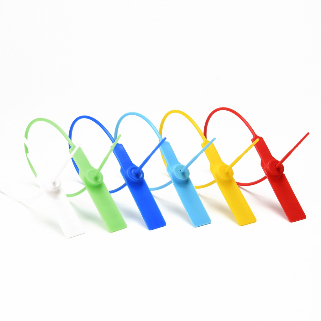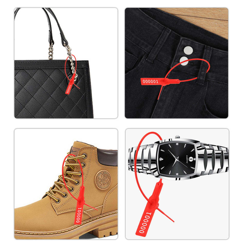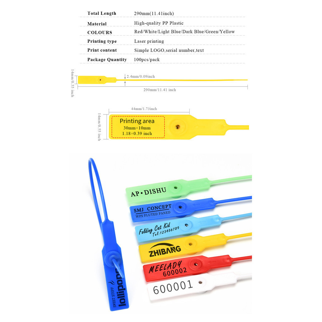 100PCS Plastic Security Seals Pull Tite Tags Serial Numbered Seal Tag Metal Insert Clip Lock Tamper Evident Ties for Fire Extinguisher Shoes Clothes Bags Length 290MM