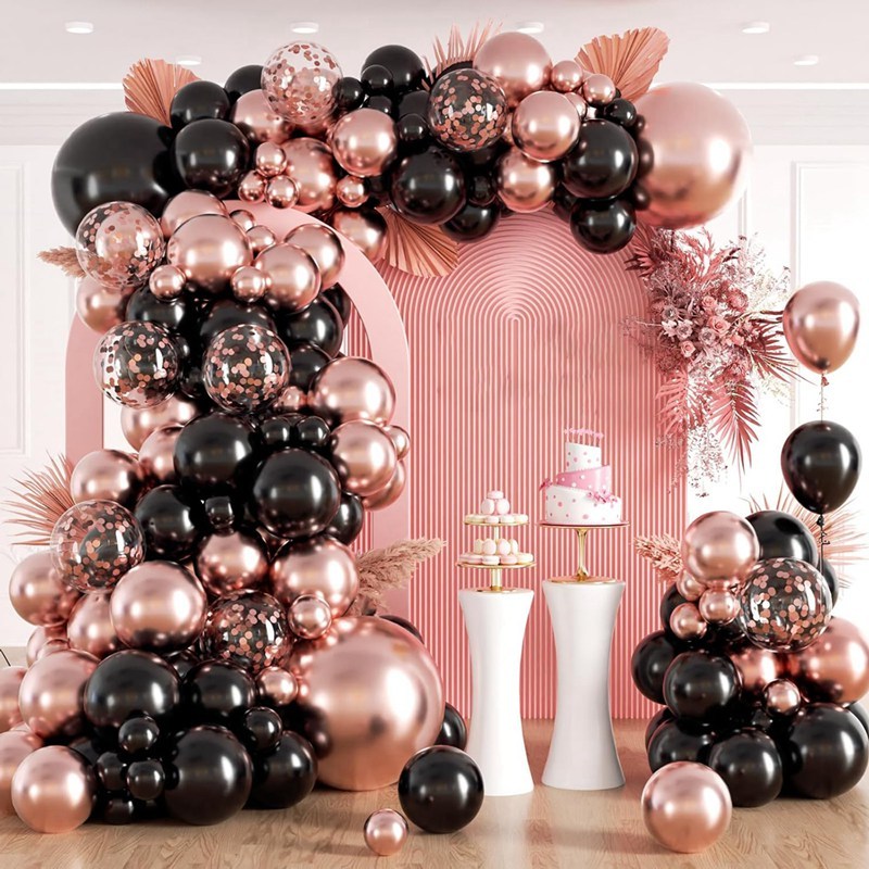 100PCS Rose Gold Black Balloons Rose Gold Metallic Balloon Confetti Latex Baloons For Birthday Wedding Anniversary Graduation Baby Shower Party Decorations