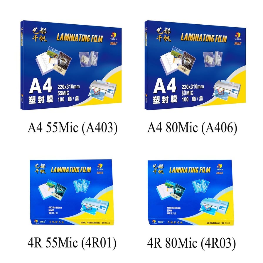100PCS Yidu Sails Thermal Laminating Film 80mic/55mic/100mic/200mic Laminator Pouch Film