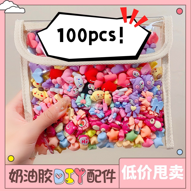 100PCs cartoon accessories cream glue handmade accessories diy material accessories wholesale TikTok mixed handmade material gift bag cute cartoon resin mobile phone shell DIY patch