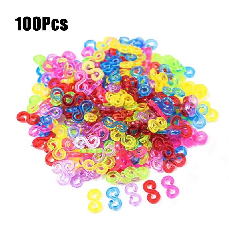 100Pcs Acrylic S Clips Loom Rubber Band Clips Plastic Jewelry Connectors For Necklace Bracelet Making Colorful Clasp Refill Kit