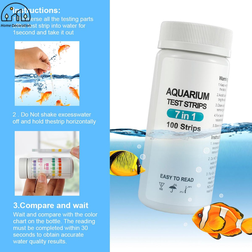 100Pcs Aquarium Test Strips 7 in 1 Fish Tank Test Kit Freshwater Saltwater Aquarium Water pH Test Strips Kit