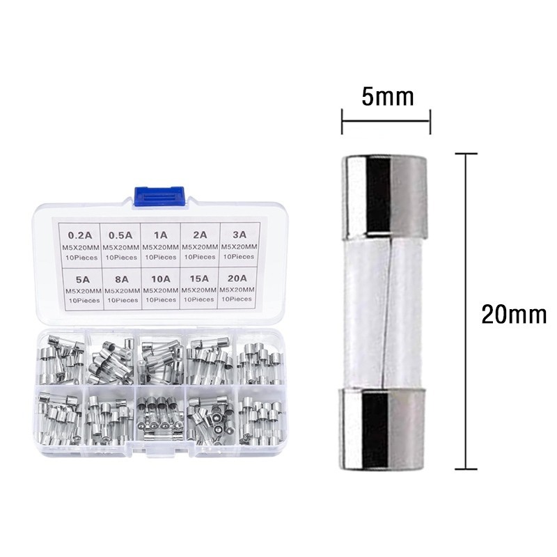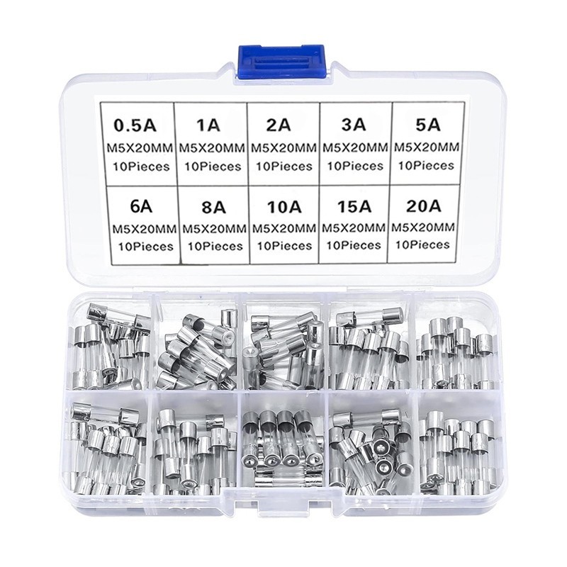 100Pcs/Box 0V-250V Glass Tube Fuse 5*20mm Fast Blow Glass Fuses 0.5A 1A 2A 3A 5A 6A 8A 10A 15A 20A