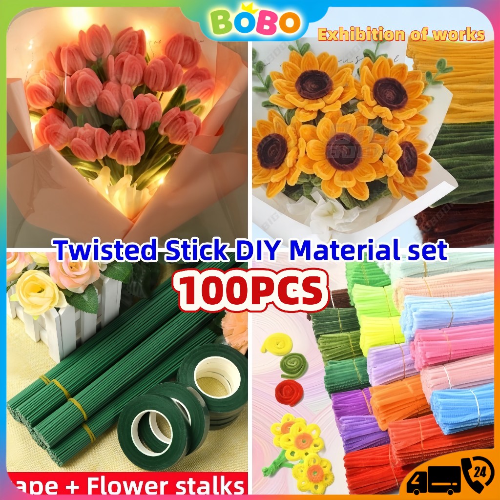 100Pcs DIY Colorful Fuzzy Wire Twisted Stick Craft Flower Children's Handmade Macaron Wool Strip Toy