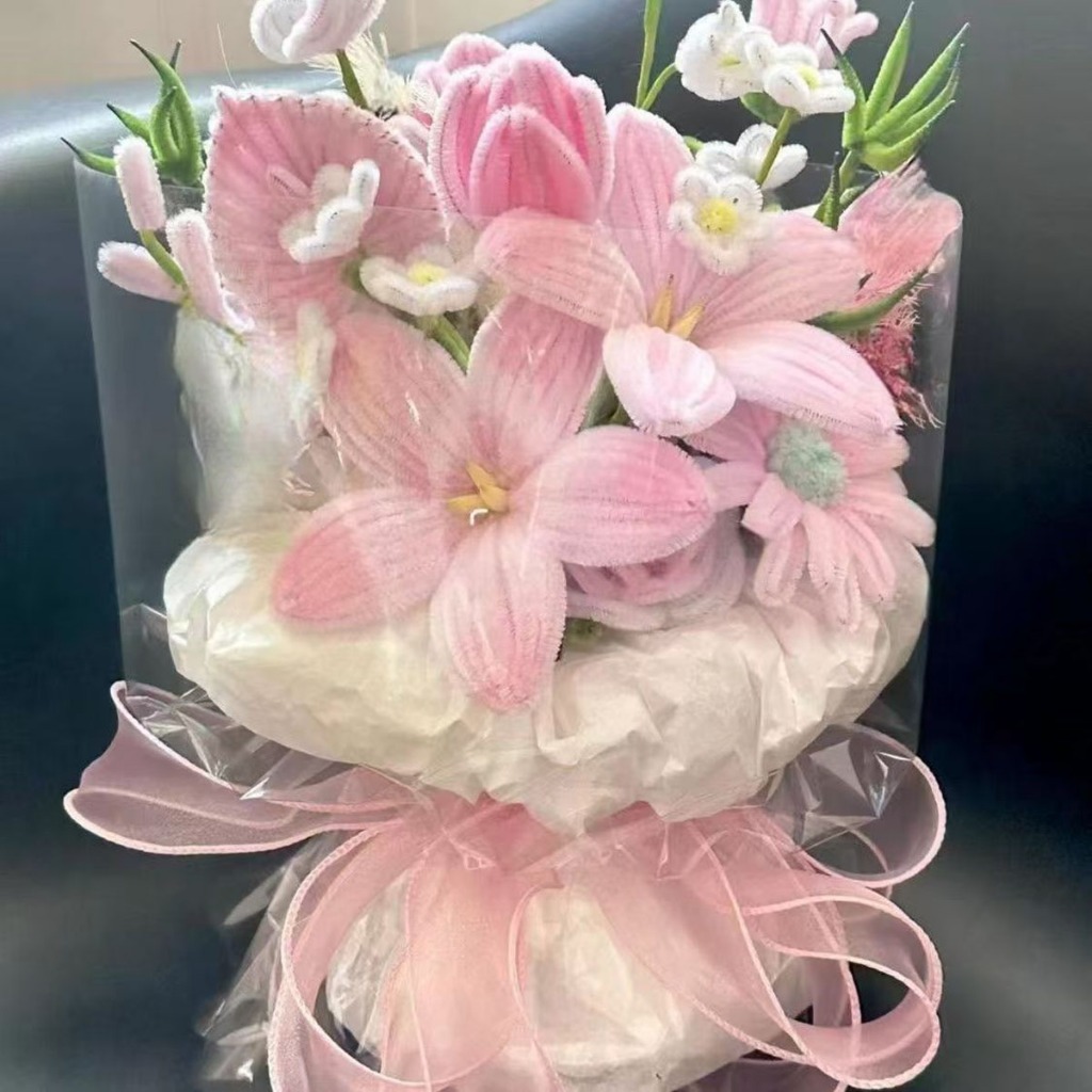 100Pcs DIY Multicolour Fuzzy Wire Bouquet Material Twisted Stick Craft Flower Children Handmade Toy