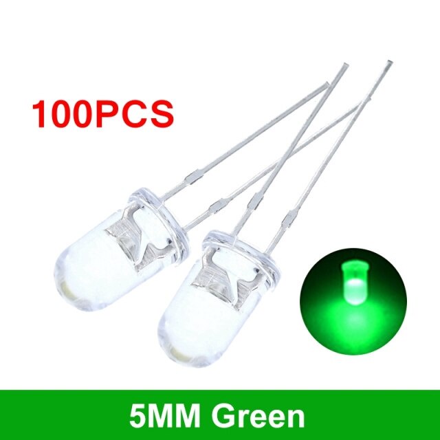 100Pcs F5 5mm LED Diode Transparent Round Leg 18mm Super Bright Water Clear Green Red White Yellow Blue Light LED Bulbs Emitting Diode